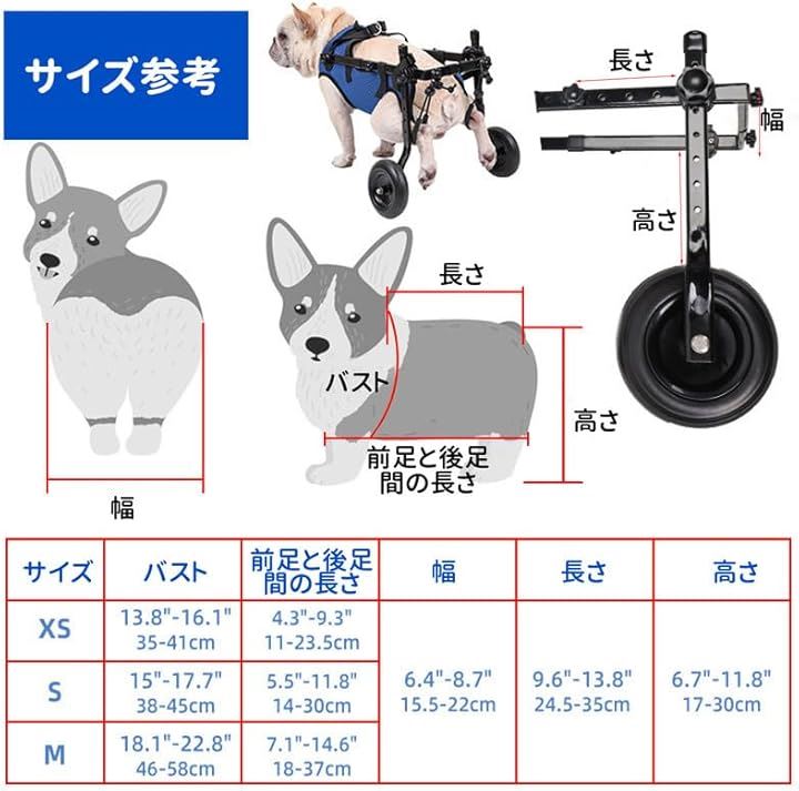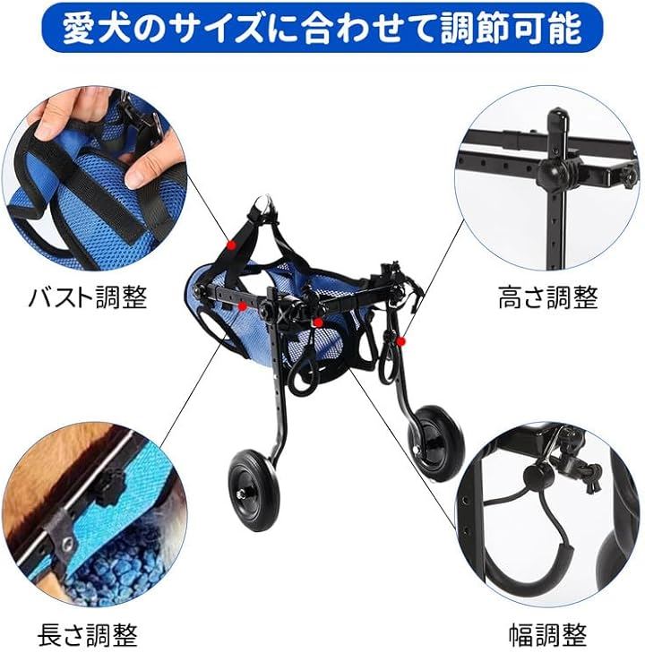 犬用車椅子 犬の歩行補助具 犬用リハビリ補助車 軽量 サイズ調整可能 2輪犬用カート リハビリテーション 看護 高齢犬 ユニバーサル 犬リハビリ用具 犬介護