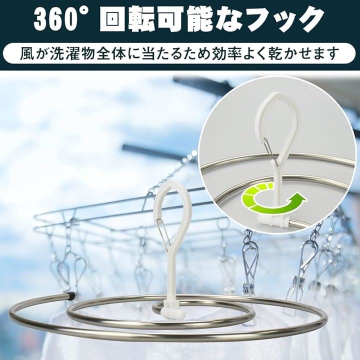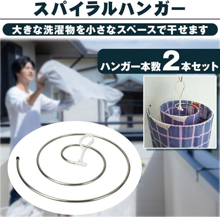スパイラル型ハンガー シーツ 大判タオル 洗濯物 省スペース 落下防止 回転