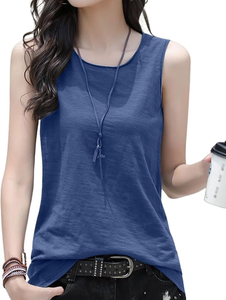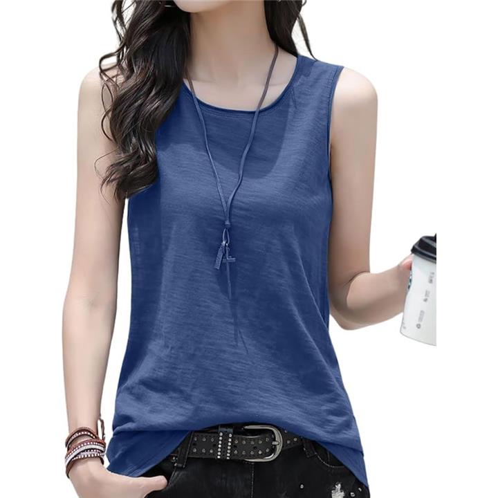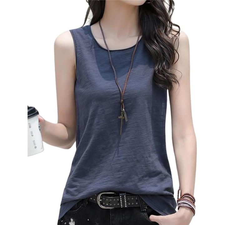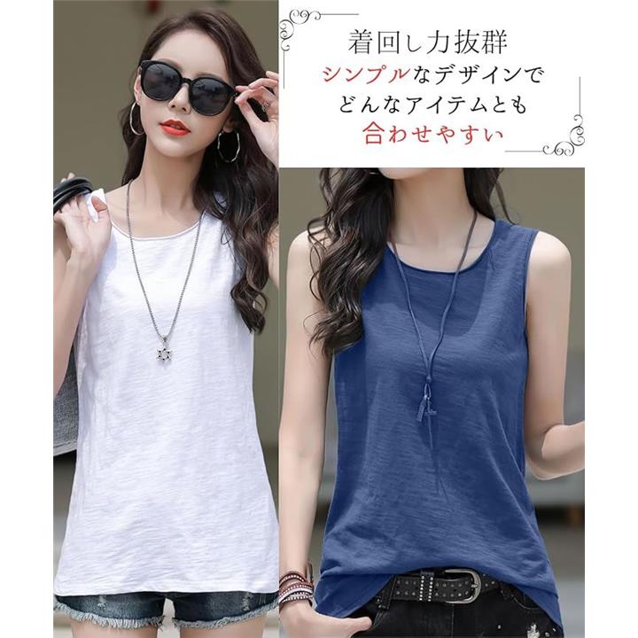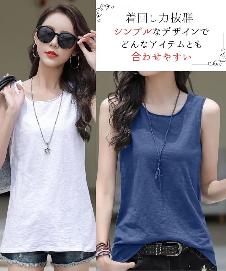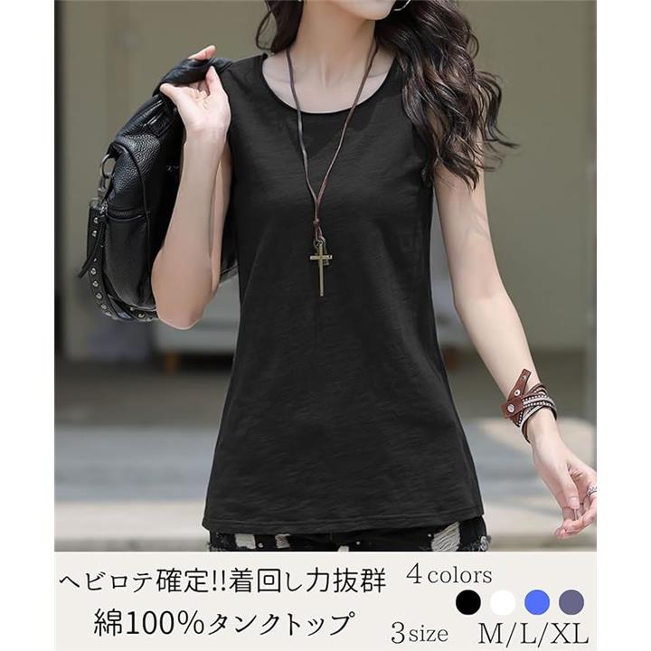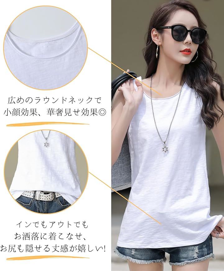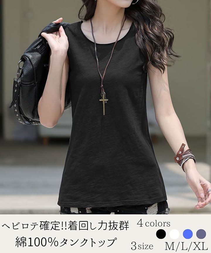 レディース ノースリーブとして、ヨガやインナー、部屋着まで幅広く使えるシンプルなアイテムです。