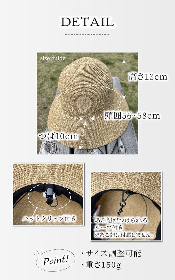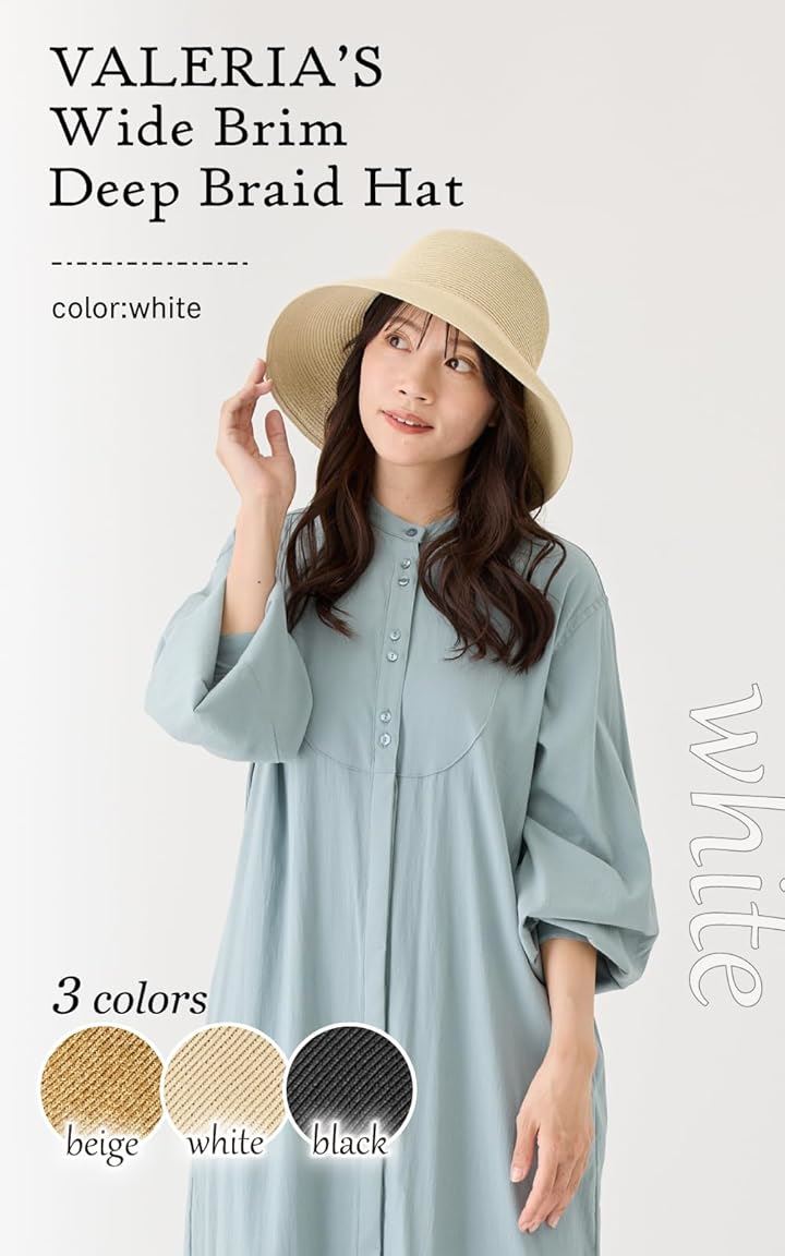 バレリア ブレードハット つば広 絶対に日焼けしたくない。 帽子 レディース 日焼け防止 サイズ調整 ハットクリップ 深め