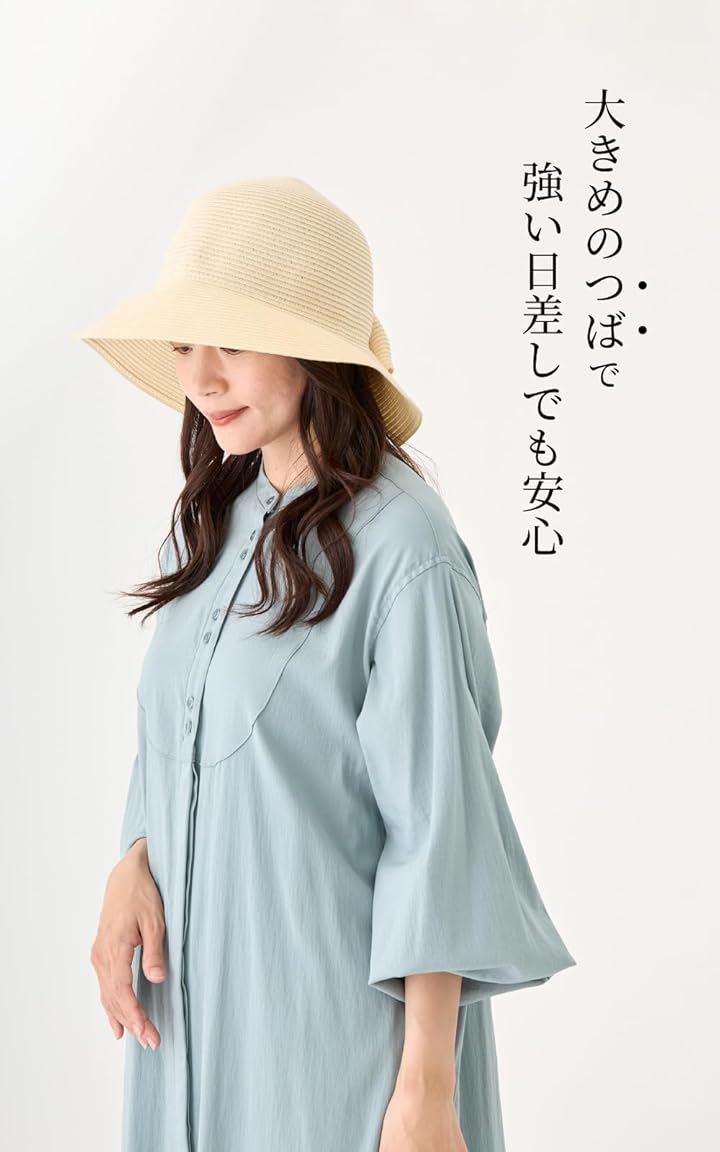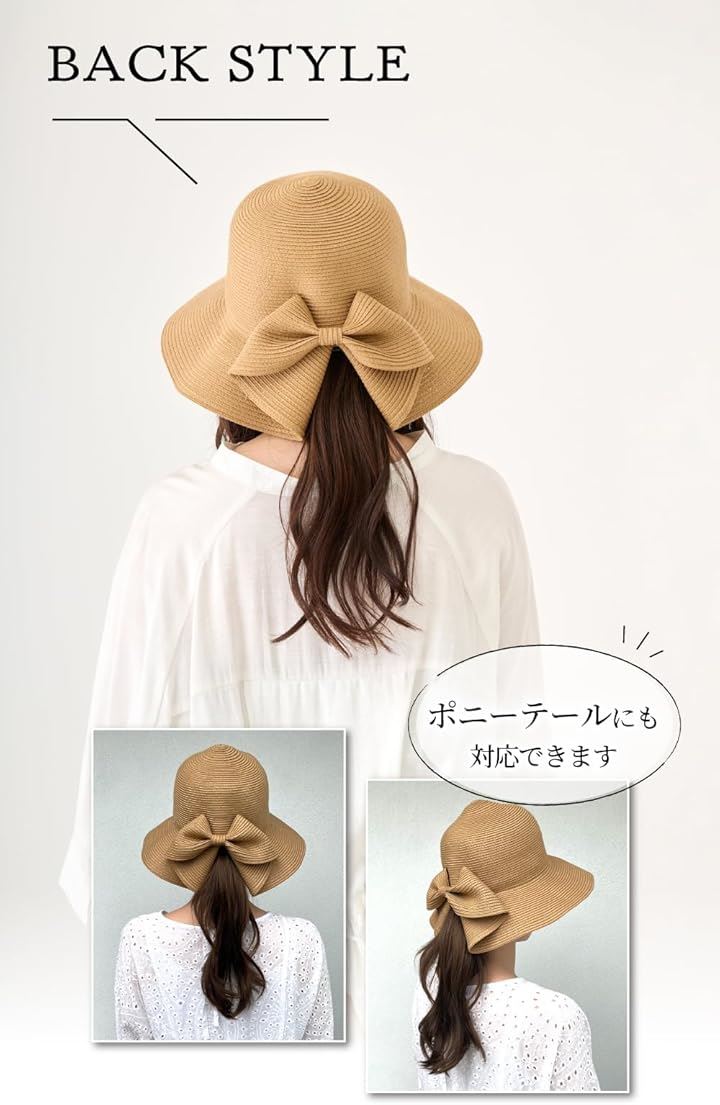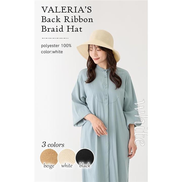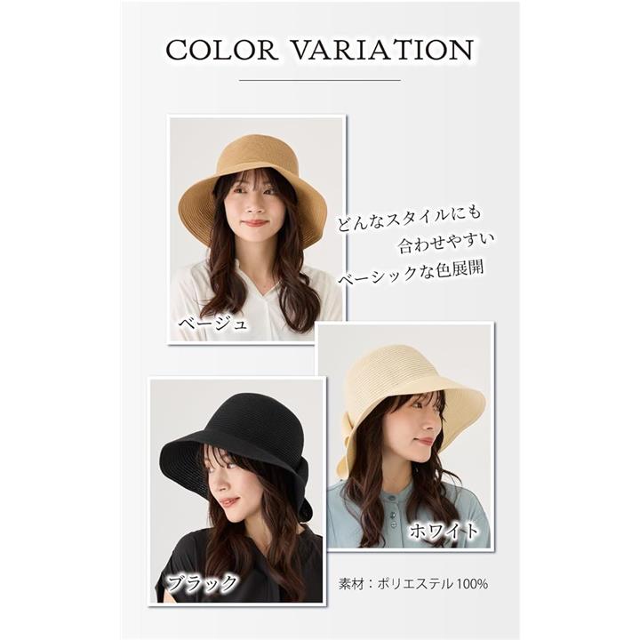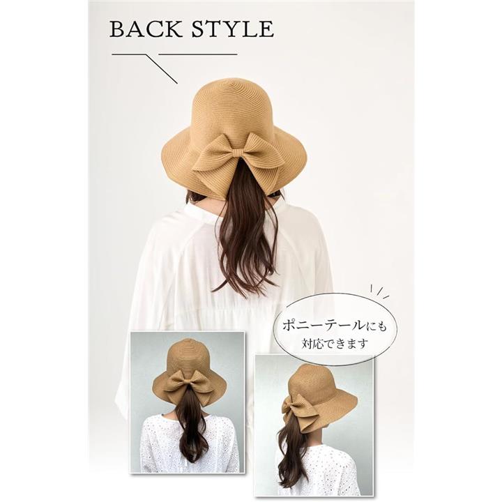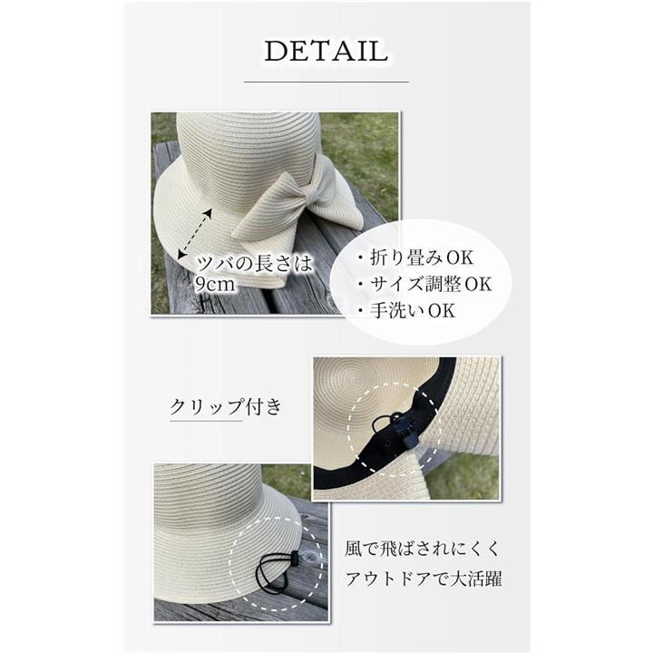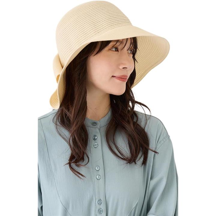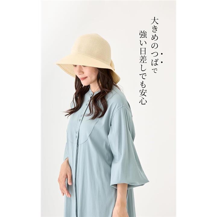 バレリア 大きいリボン ブレードハット 帽子 レディース 日焼け防止 サイズ調整 ハットクリップ 深め