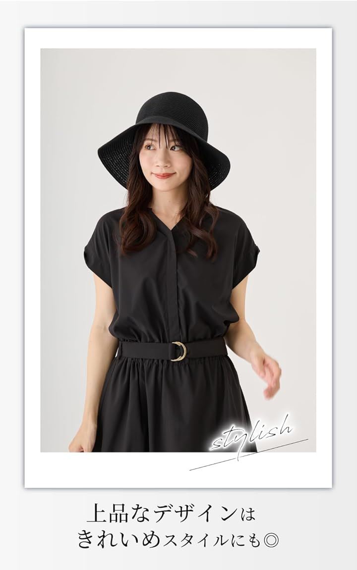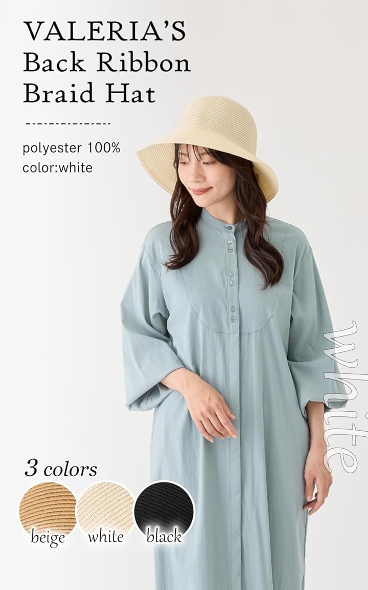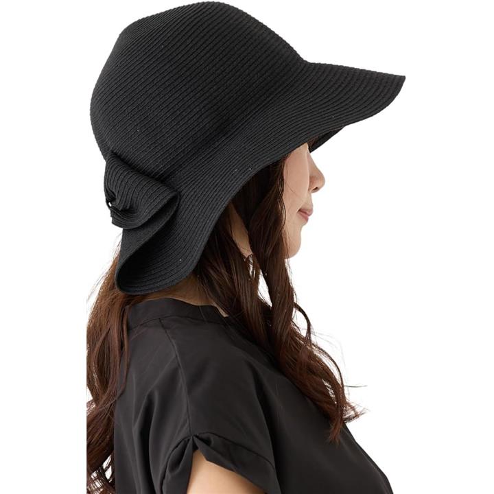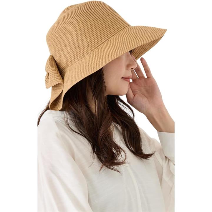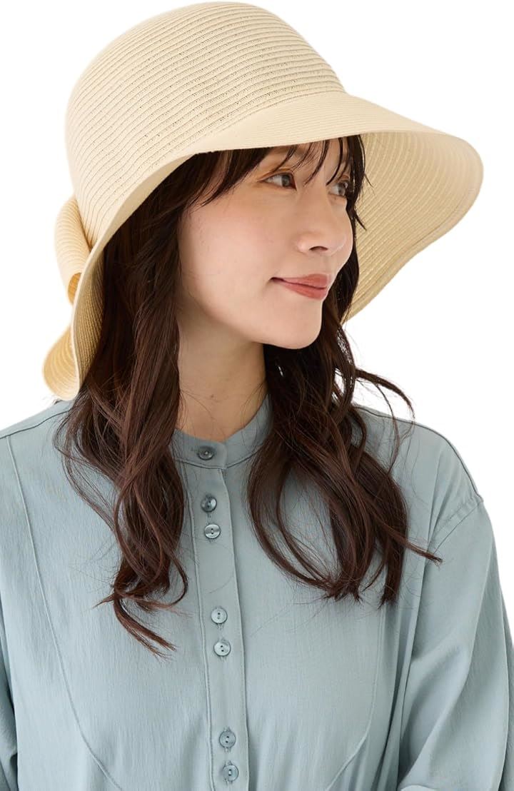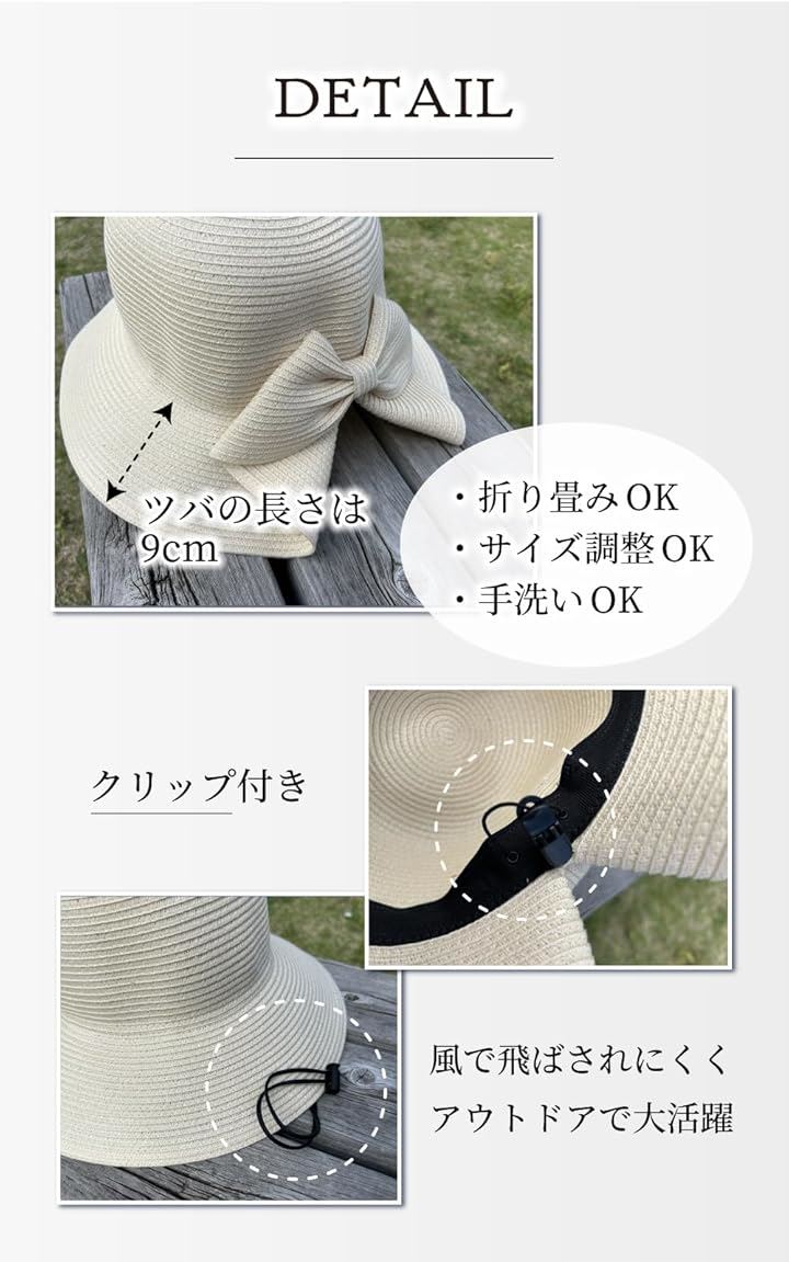 バレリア 大きいリボン ブレードハット 帽子 レディース 日焼け防止 サイズ調整 ハットクリップ 深め