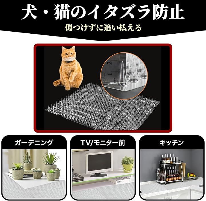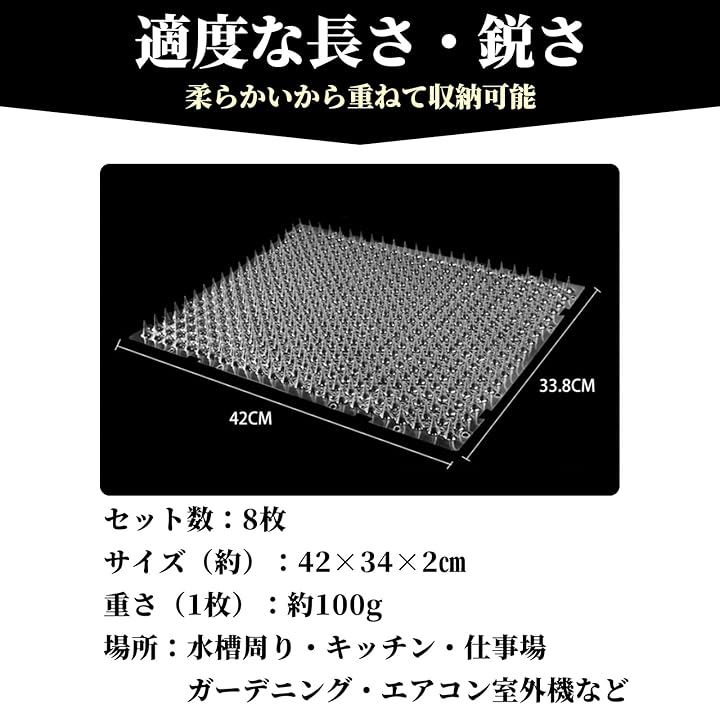 猫よけ シート 8枚セット 透明 PET とげマット 屋内用 害獣フン害対策 カット可