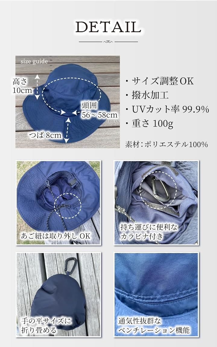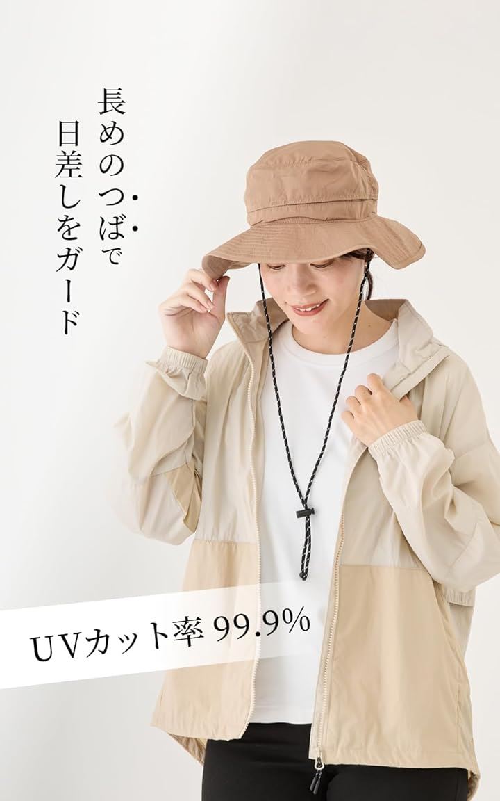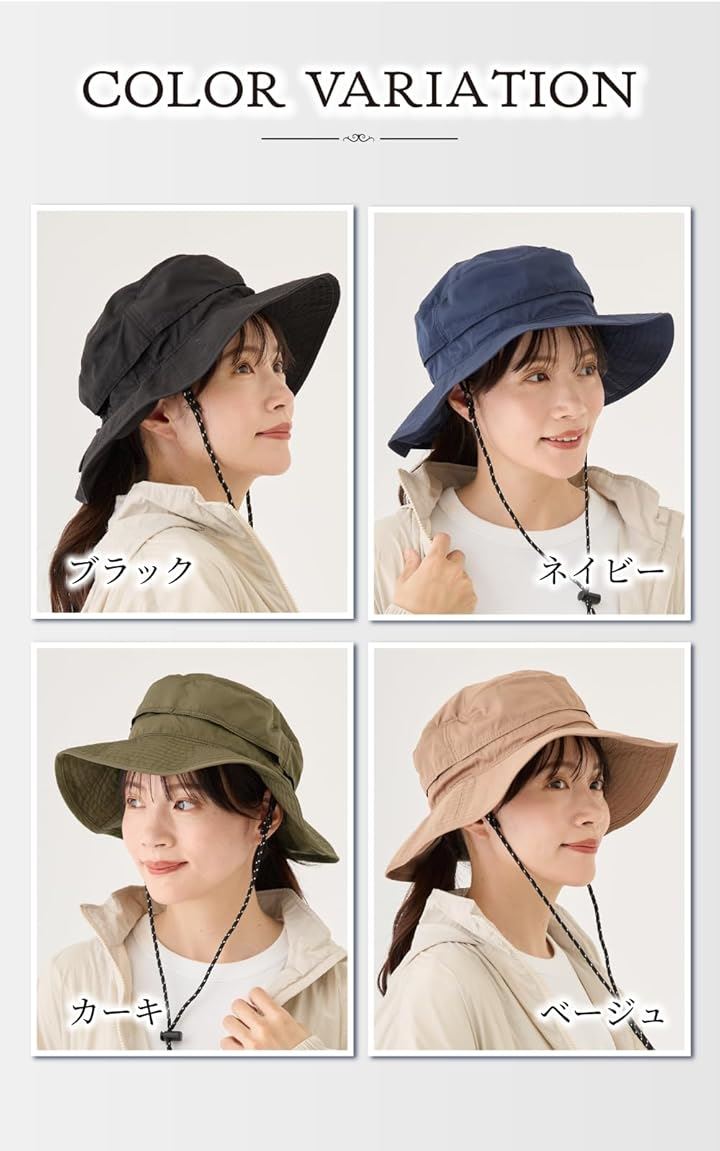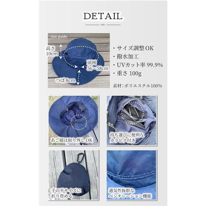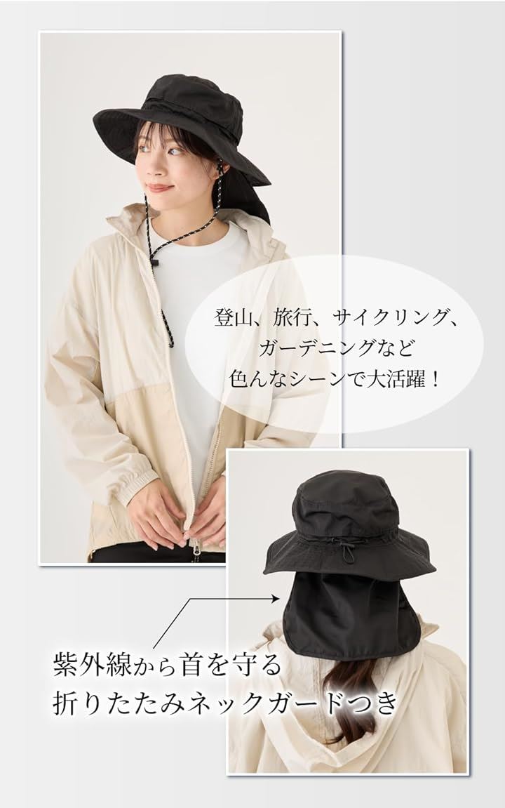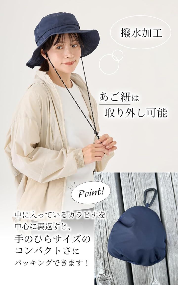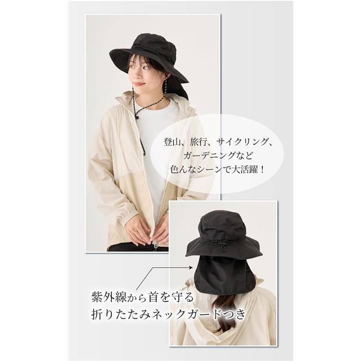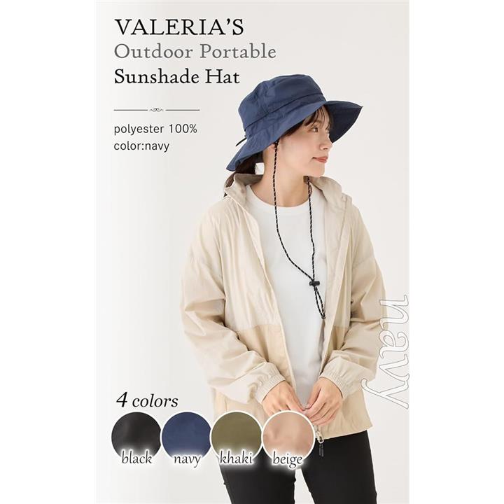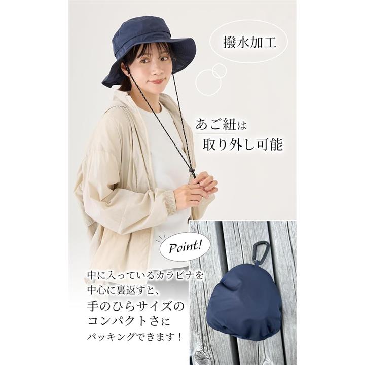 バレリア 撥水アウトドアハット 首焼け防止 極小ポケッタブル 帽子 レディース uv対策 サイズ調整 シェードハット