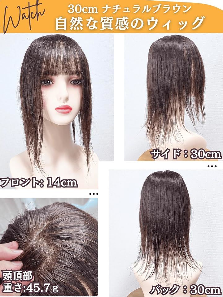 Luce brillare 部分ウィッグ ヘアピース 分け目自由自在 総手織り ポイントピース ミセス 自然 かつら 女性 レディース 人毛100% ストレート 分け目 ウィッグ セミロング 医療用 つむじ 頭頂部 30cm |
