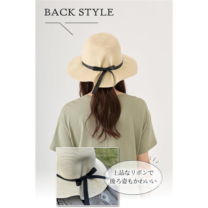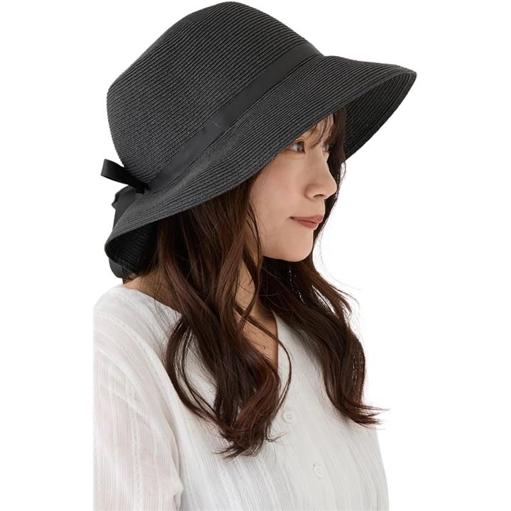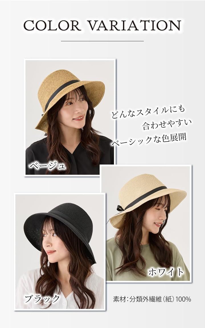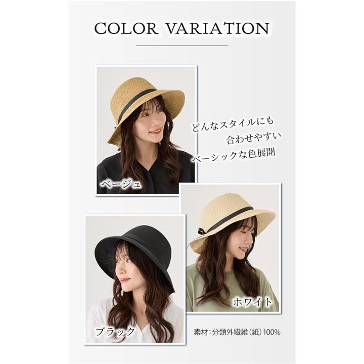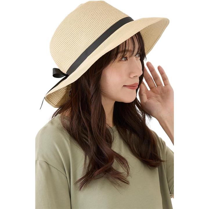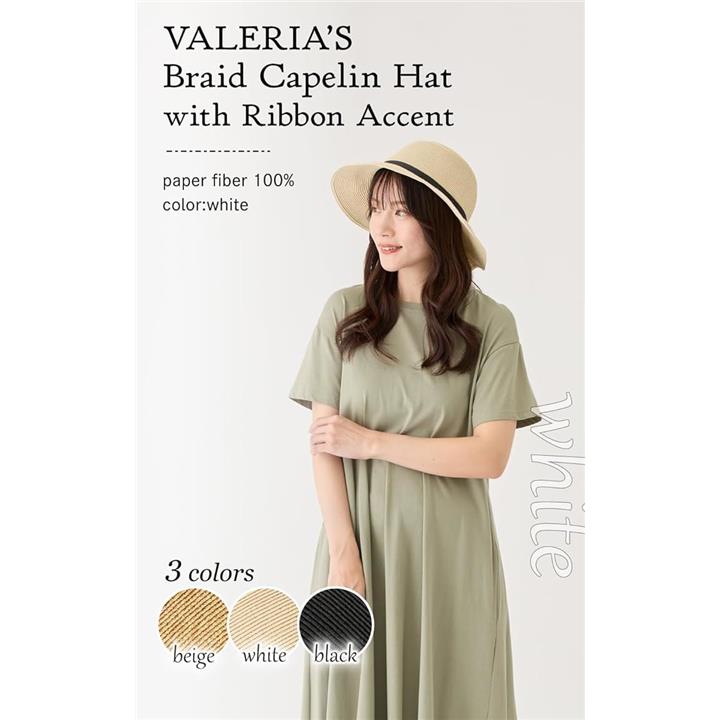 バレリア ブレード キャペリンハット リボンテープ 帽子 レディース 日焼け防止 サイズ調整 ハットクリップ 深め