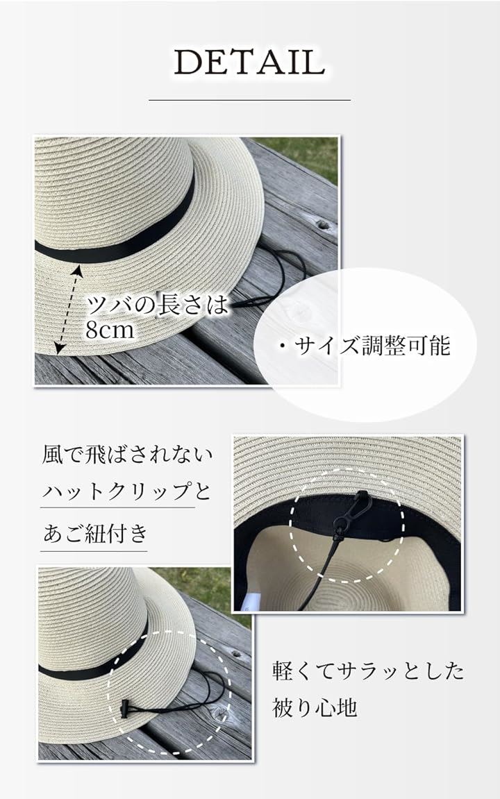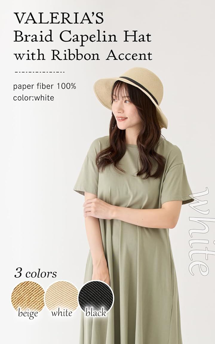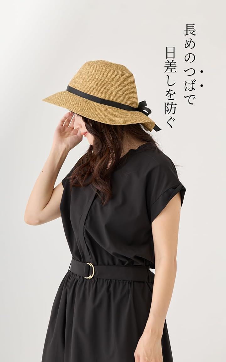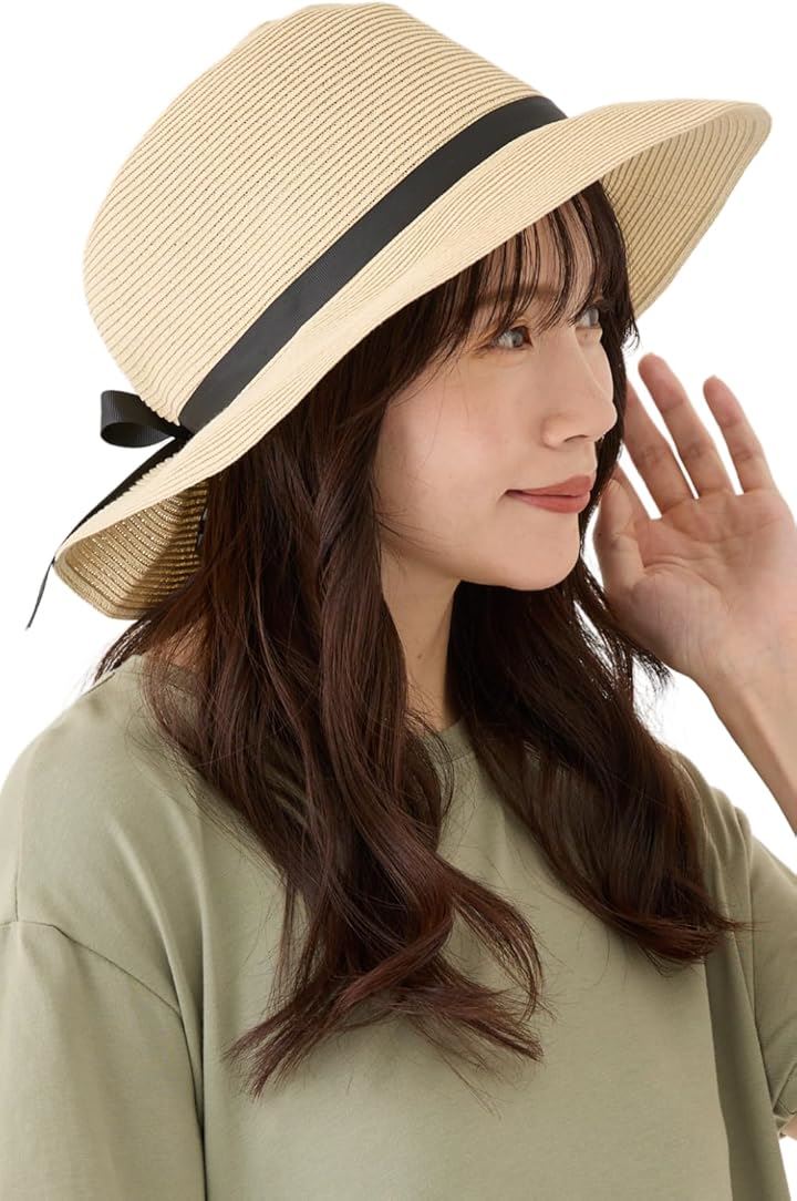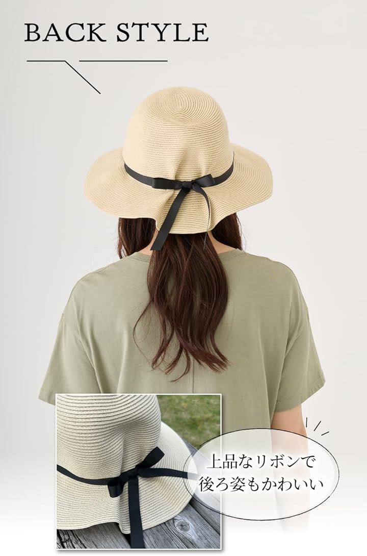 バレリア ブレード キャペリンハット リボンテープ 帽子 レディース 日焼け防止 サイズ調整 ハットクリップ 深め