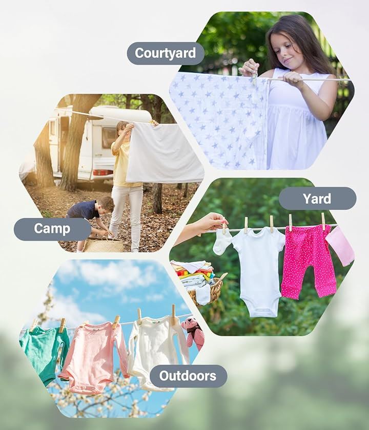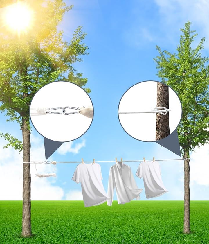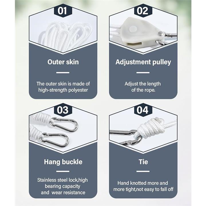調節可能物干し竿 6 m 旅行物干しロープベルト滑車 防風物干しロープ 携帯型 キャンプ 雨季 室内干し 伸縮物干し竿