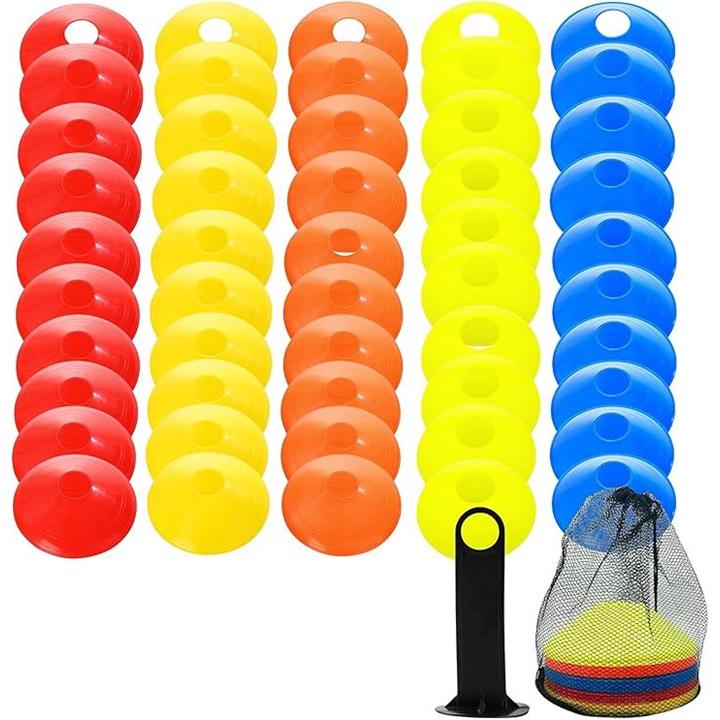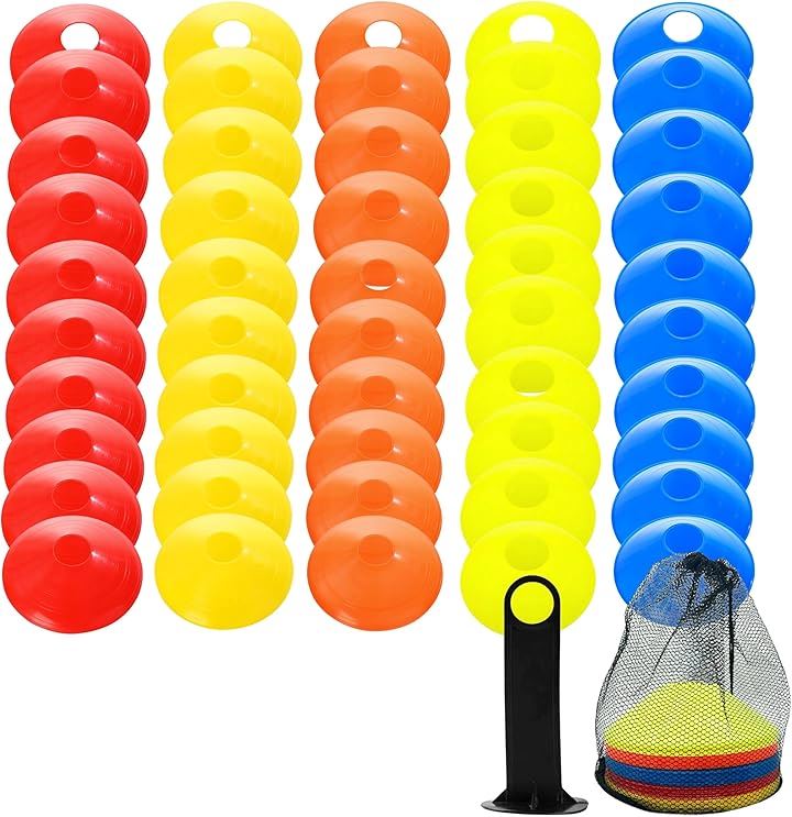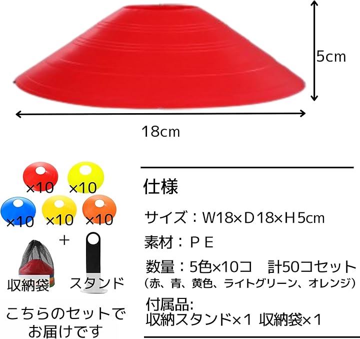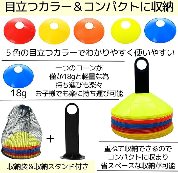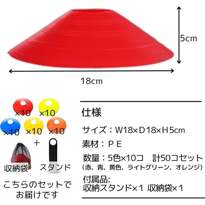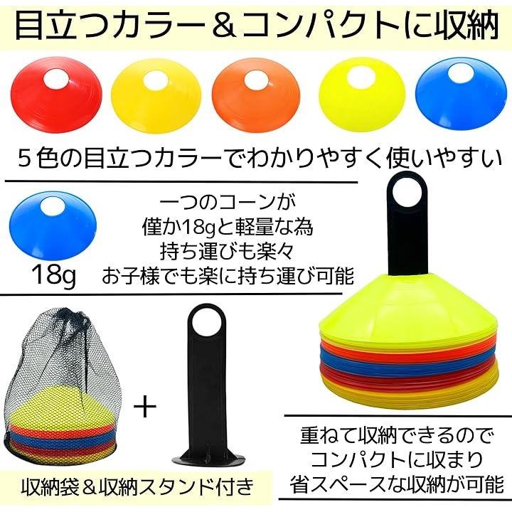 マーカーコーン カラーコーン サッカー フットサル バスケ スポーツ トレーニング 50個 5色x10個 ラック 収納袋付