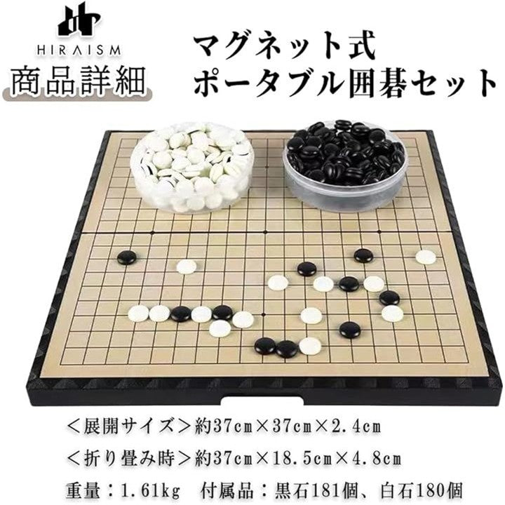 ポータブル囲碁セット 19路盤 碁石付き マグネット式 折りたたみ