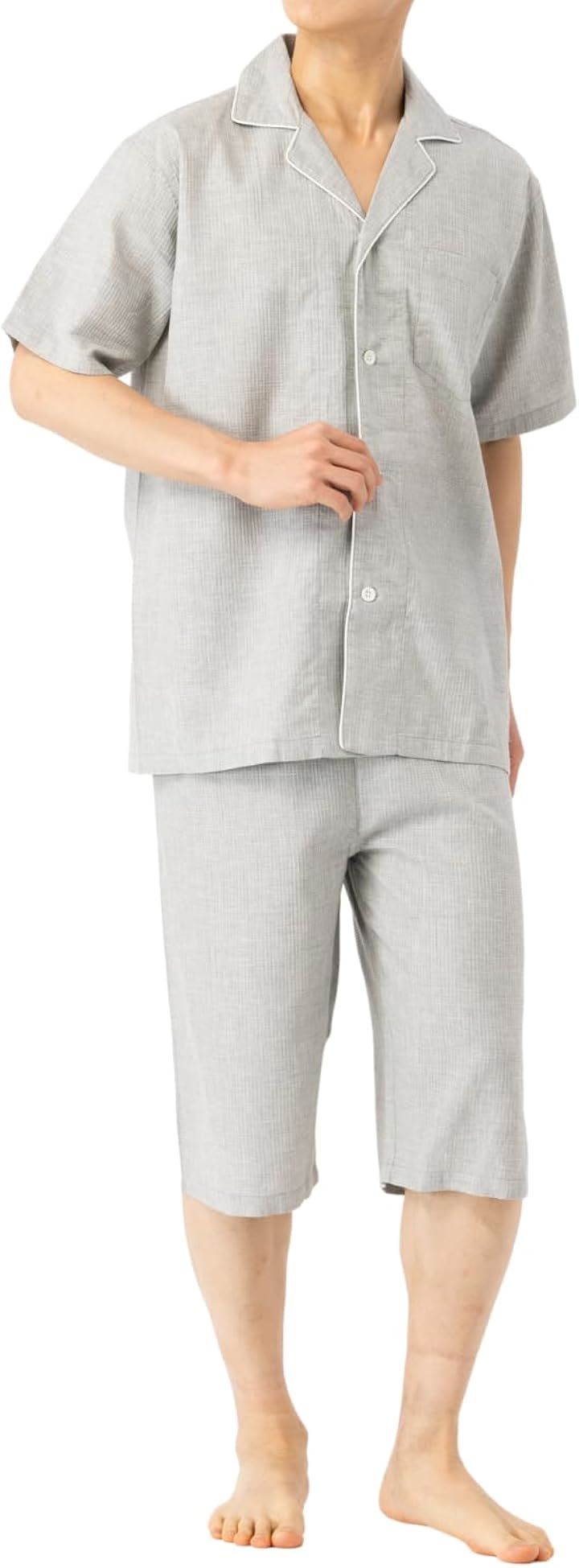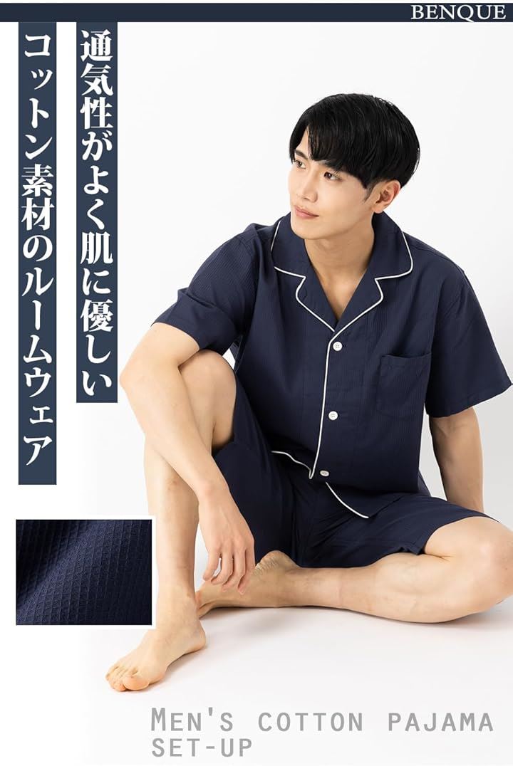 柔らかな肌触り パジャマ 半袖 七分丈ズボン 綿100% 夏服 おしゃれ 涼しい パジャマセット 上下 寝巻き 紳士 入院 夏用 ナツ