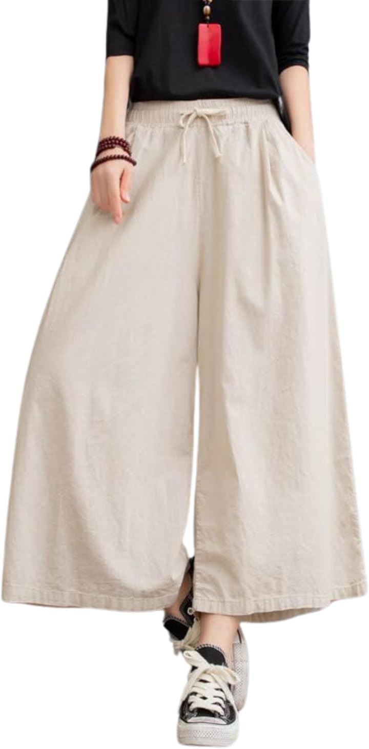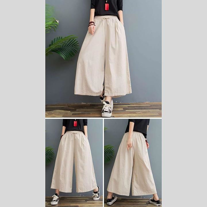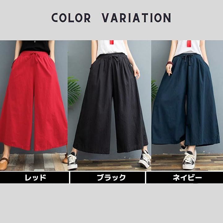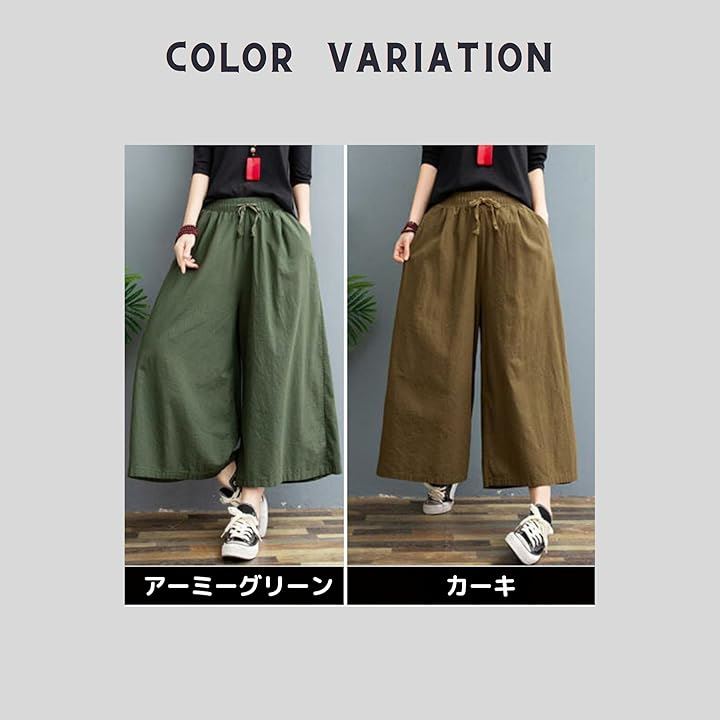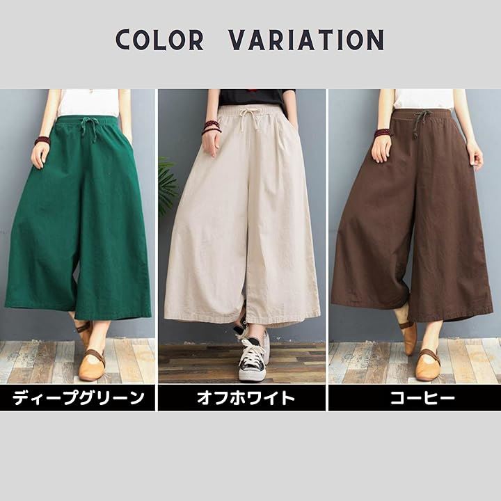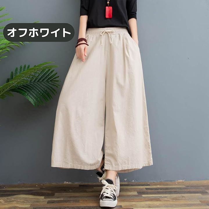 [YasYouRi] ガウチョパンツ ワイド 8分丈 スカーチョ 麻綿 大きいサイズ ゆったり ウエストゴム オフィス カジュアル レディース |