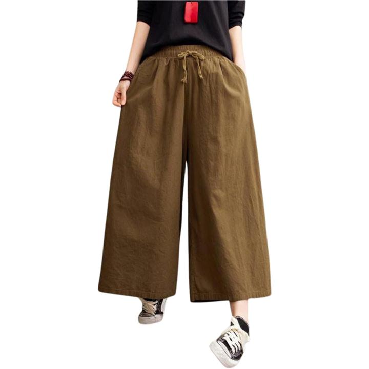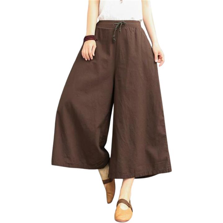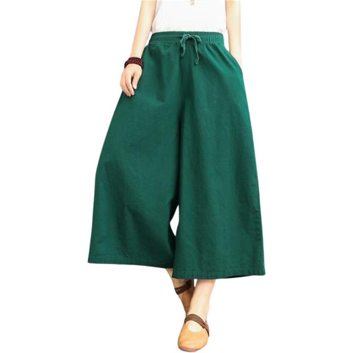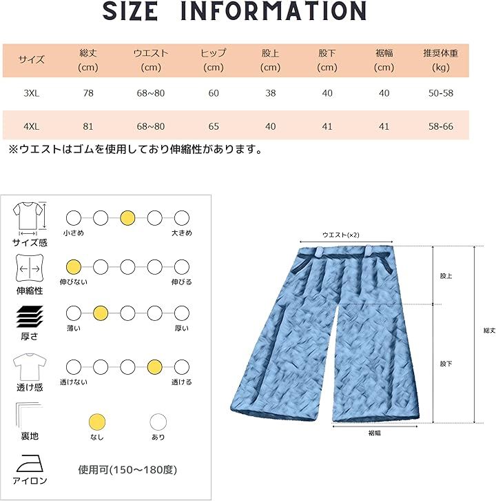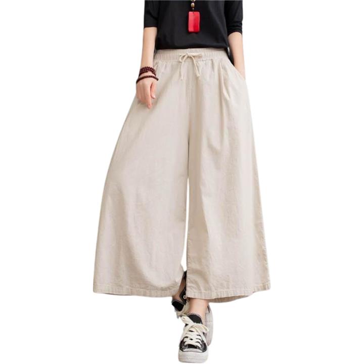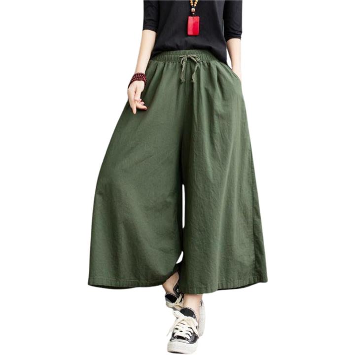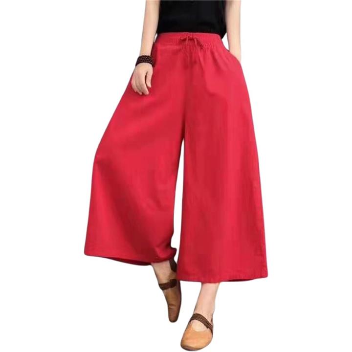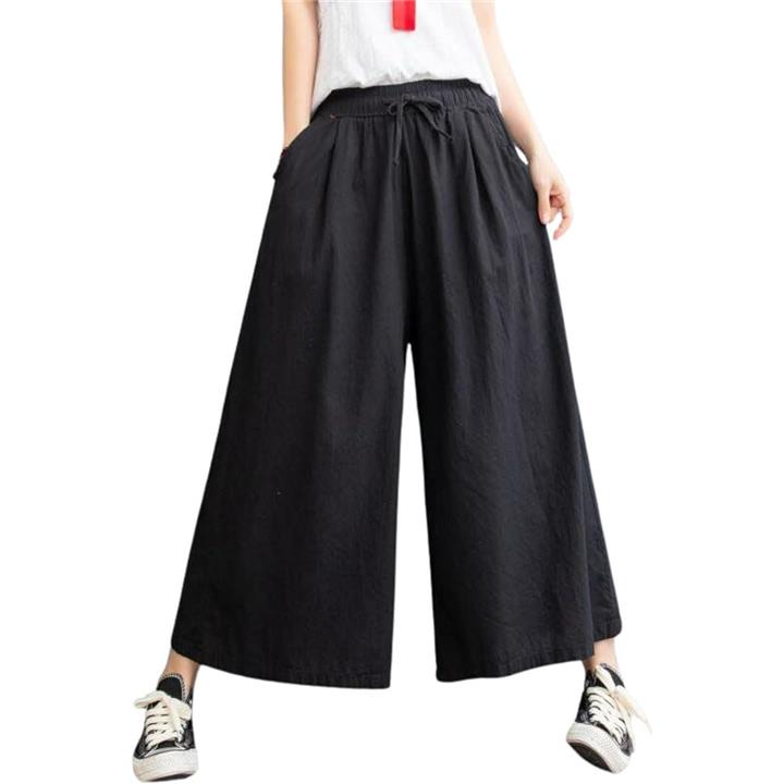 [YasYouRi] ガウチョパンツ ワイド 8分丈 スカーチョ 麻綿 大きいサイズ ゆったり ウエストゴム オフィス カジュアル レディース |