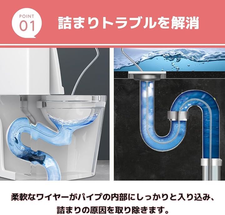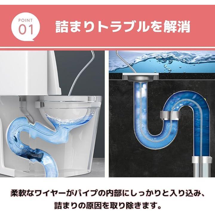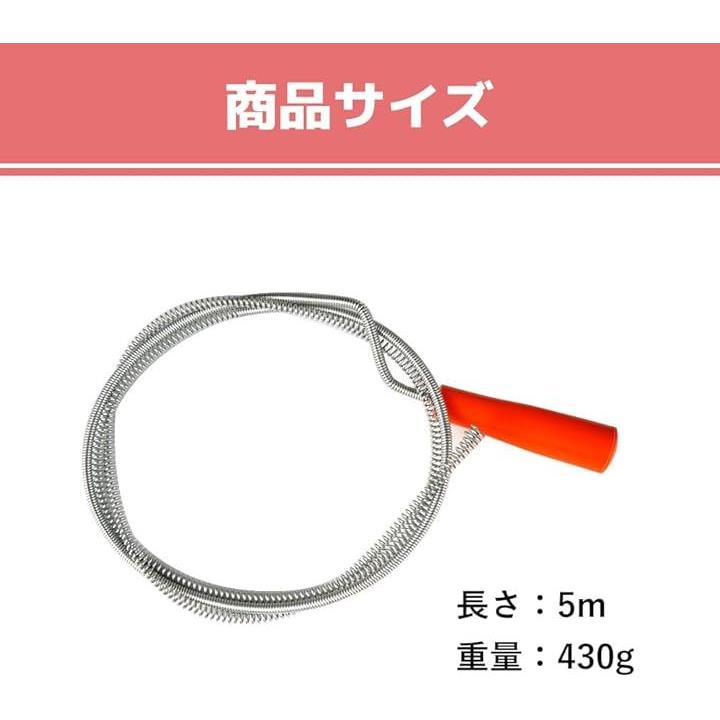 パイプクリーナー ワイヤー トイレ キッチン 詰まり解消 洗面所 風呂 掃除 5m