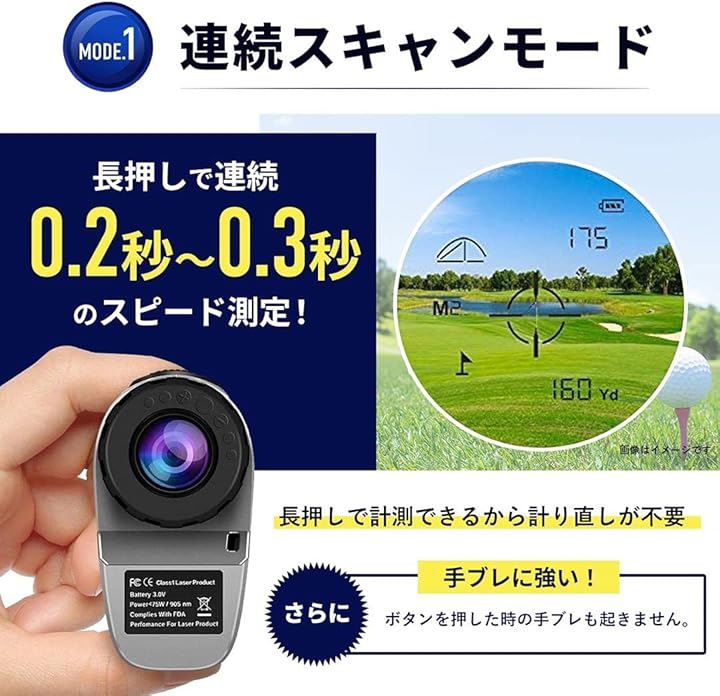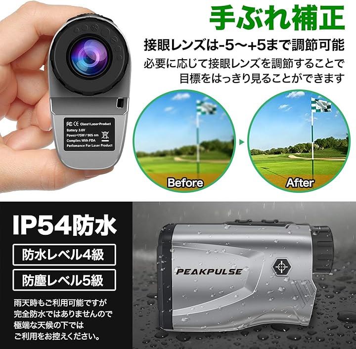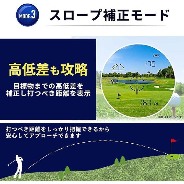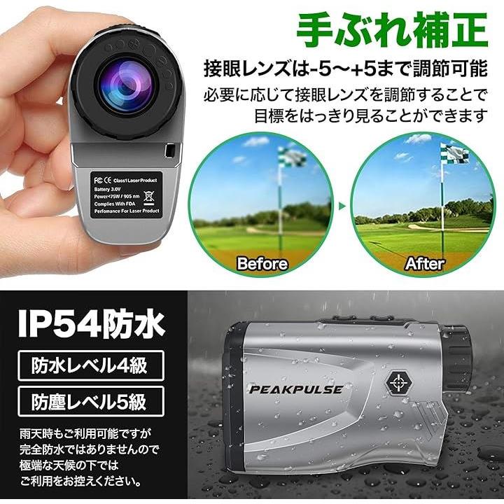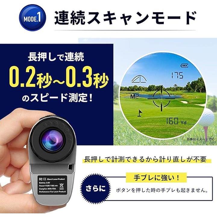 ゴルフ用 レーザー距離計 距離測定器 ゴルフスコープ 光学6倍望遠 照準合わせ IPX5防水 連続測定 スロープ補正 旗竿ロック コンパクト 収納ケース付き