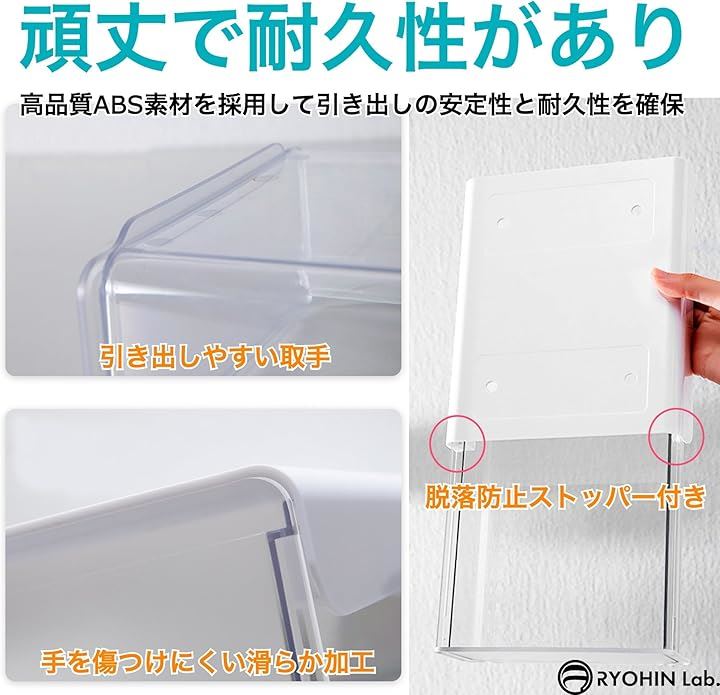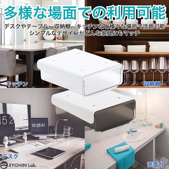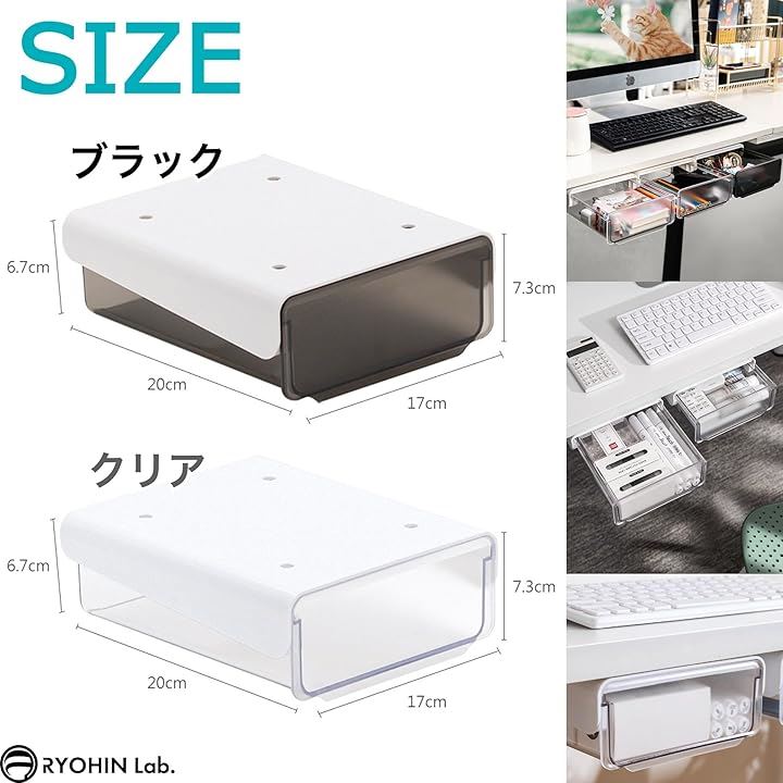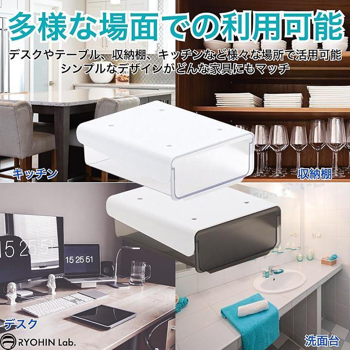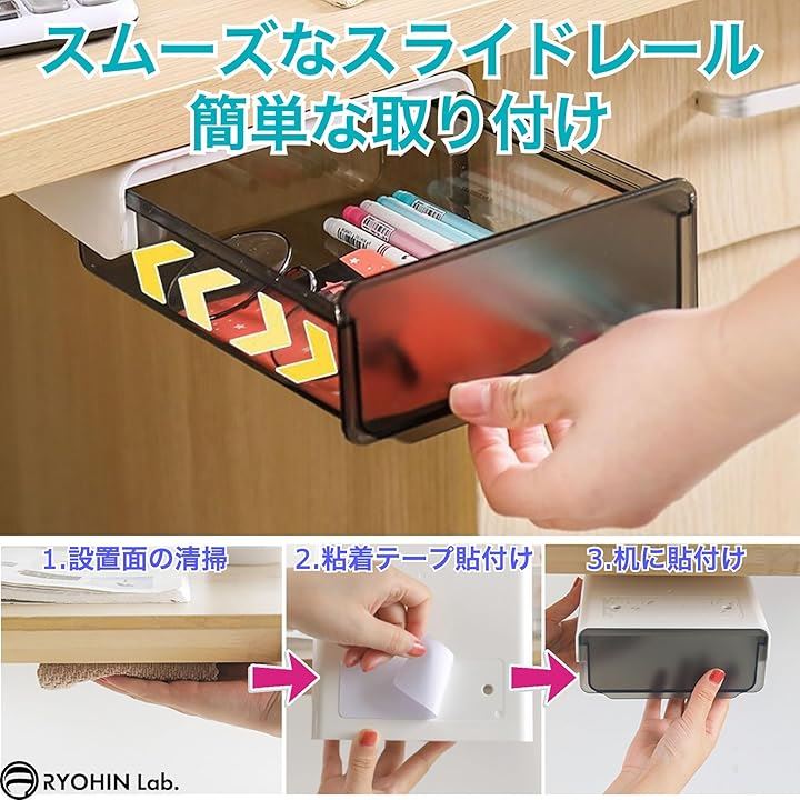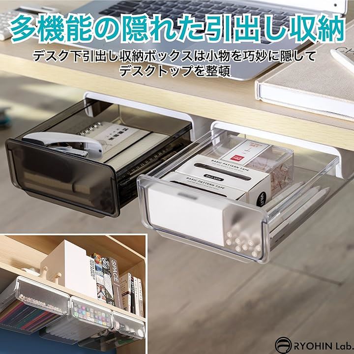 良品ラボ 後付け引き出し デスク下 テーブル 机下 収納ボックス 隠し引き出し ミニ 強力粘着テープ 取付 穴あけ不要 文房具 小物 シンプル おしゃれ 透明 2個セット