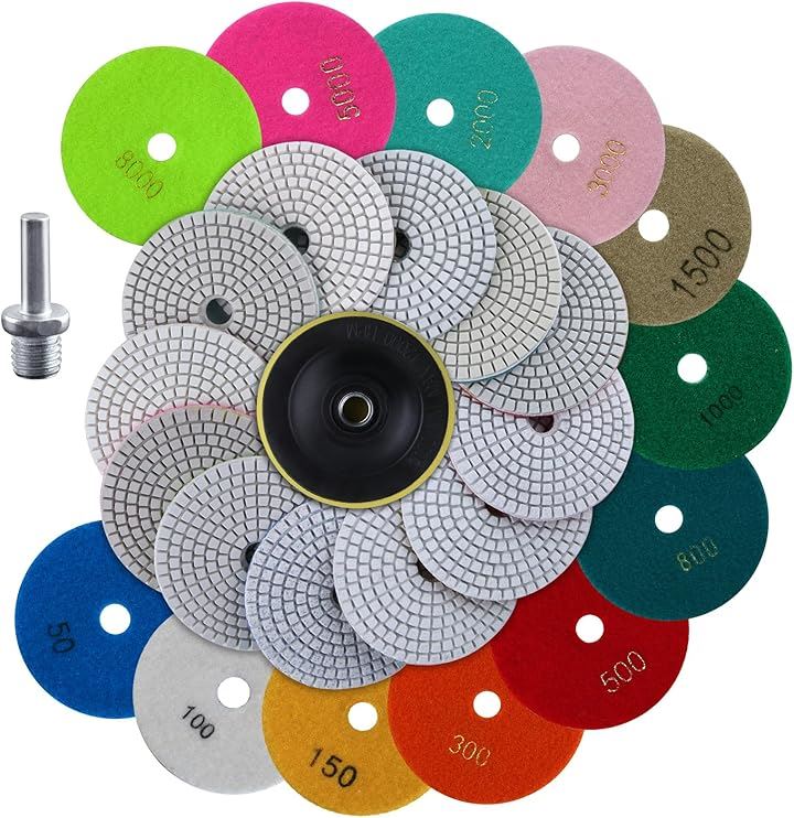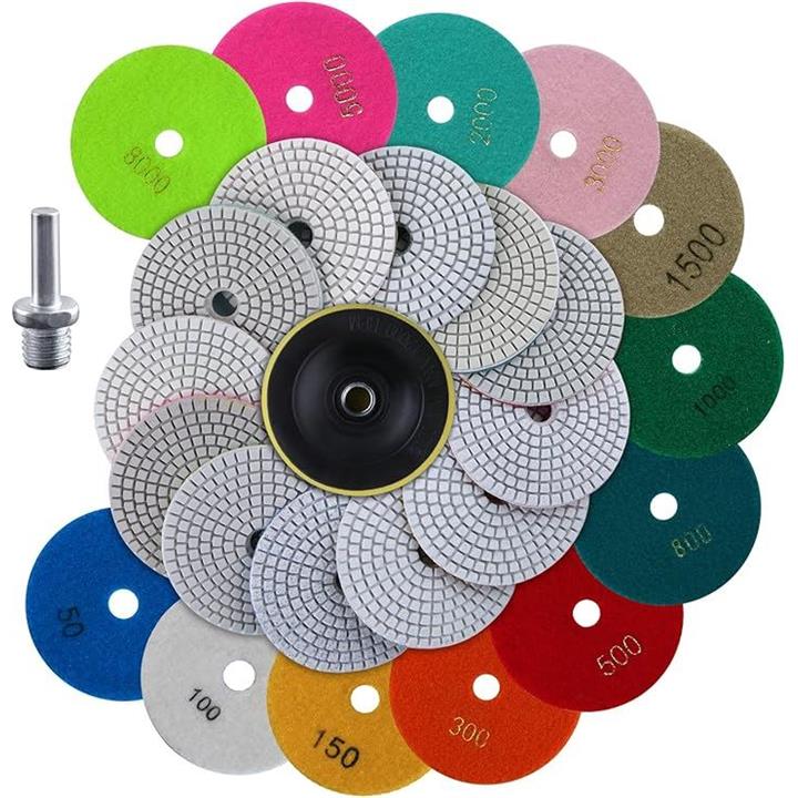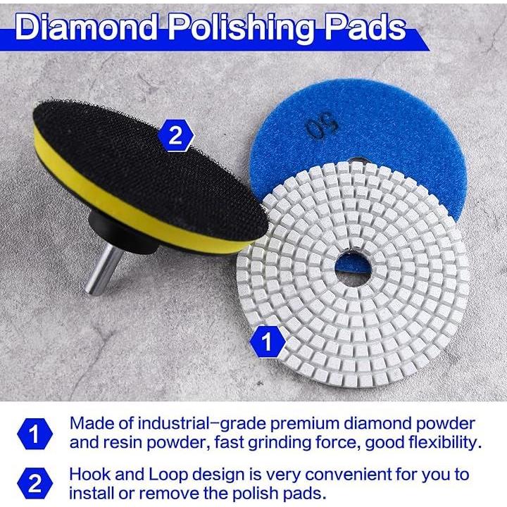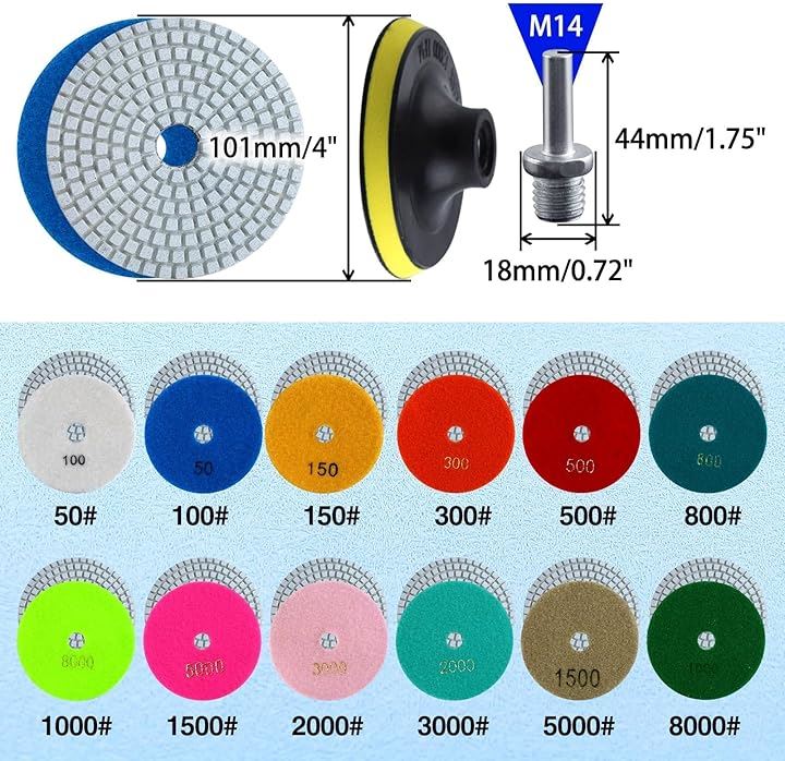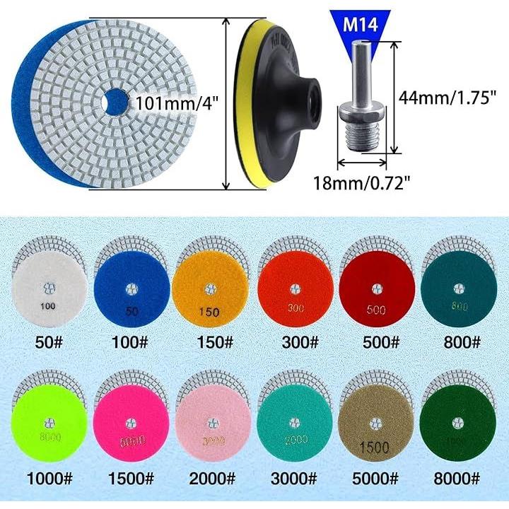 ダイヤモンド研磨パッド バッカーパッド付き ウェット/ドライポリッシュパッドキット 石のトリミングと研磨ディスク 電動ポリッシャー用 湿式/乾式 12枚入セット 50-8000#