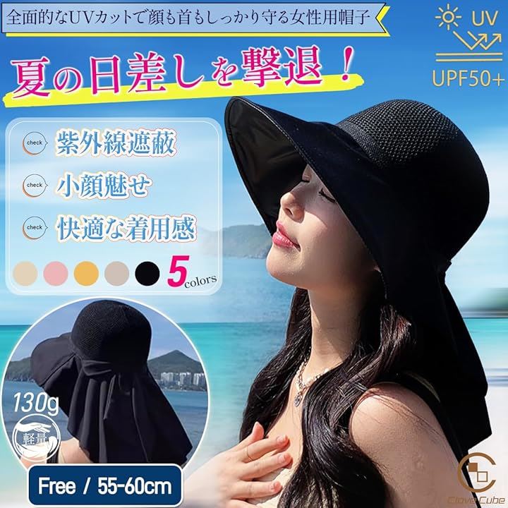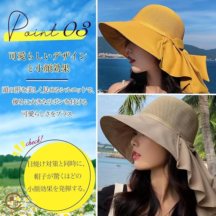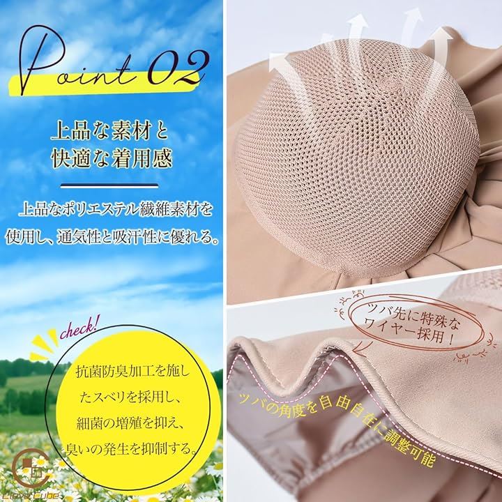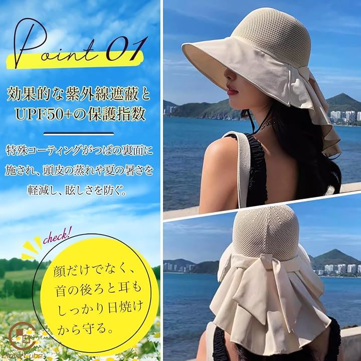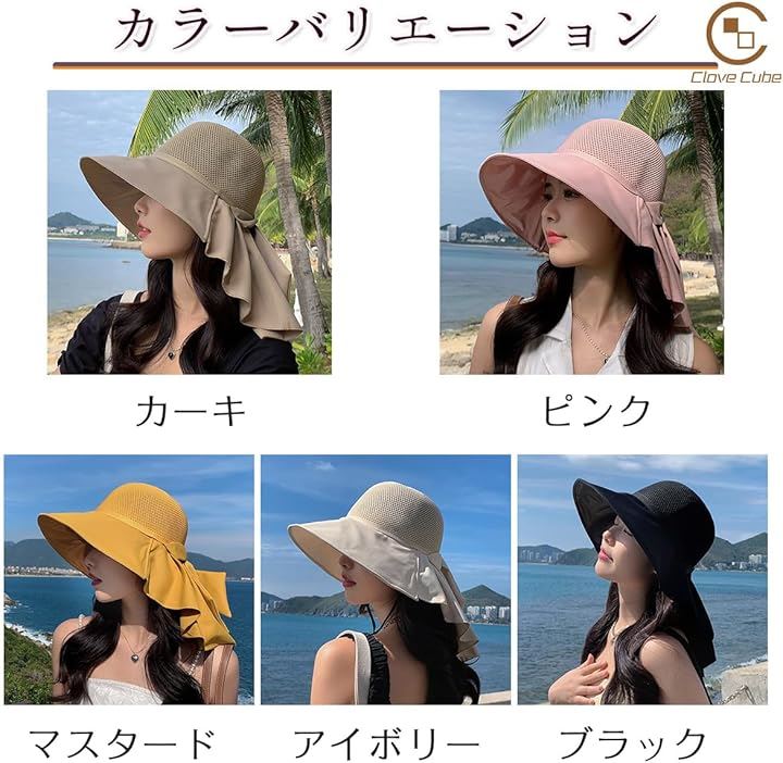 クローブキューブレディース 帽子 サンバイザー UVカット つば広 折りたたみ 軽量 通気 春 夏 調節 紐付き