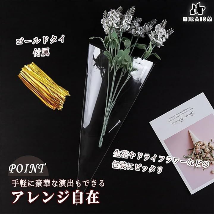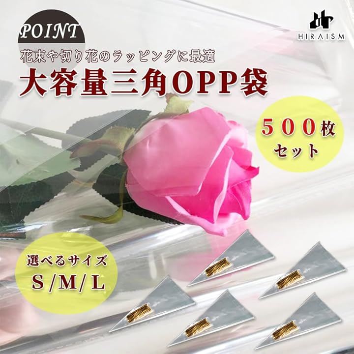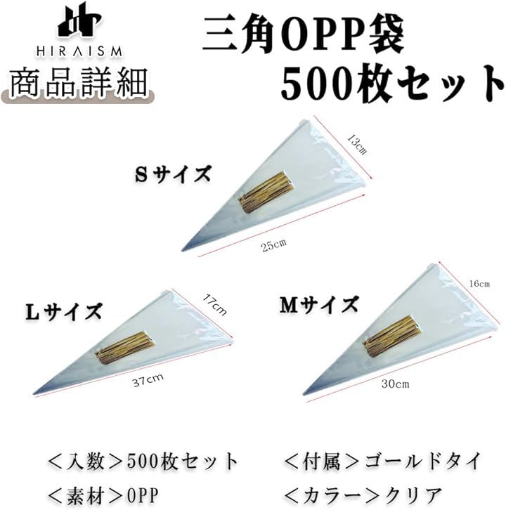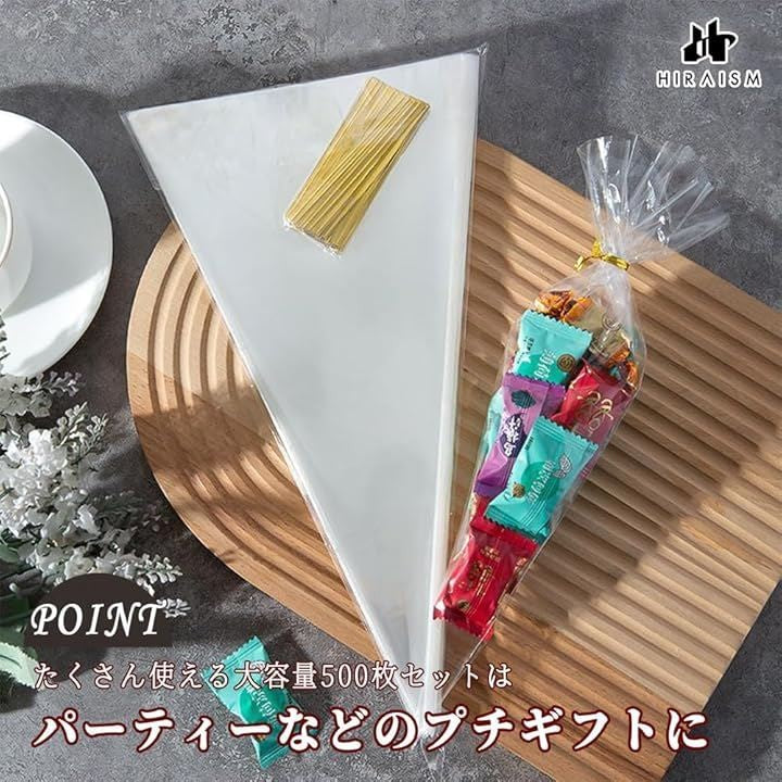 三角OPP袋 ラッピング 透明 三角形 花束 切り花 プチギフト 包装 タイ付き 大容量 500枚セット