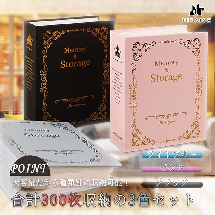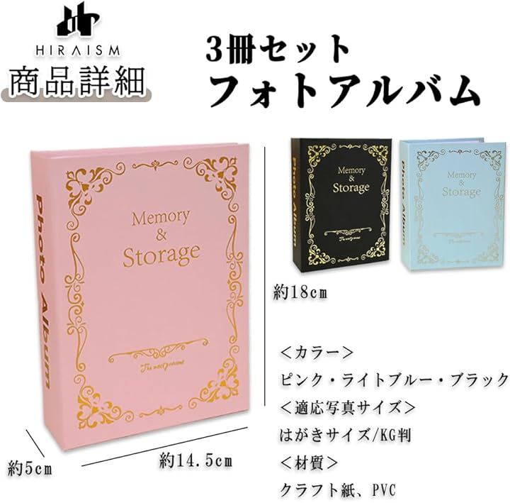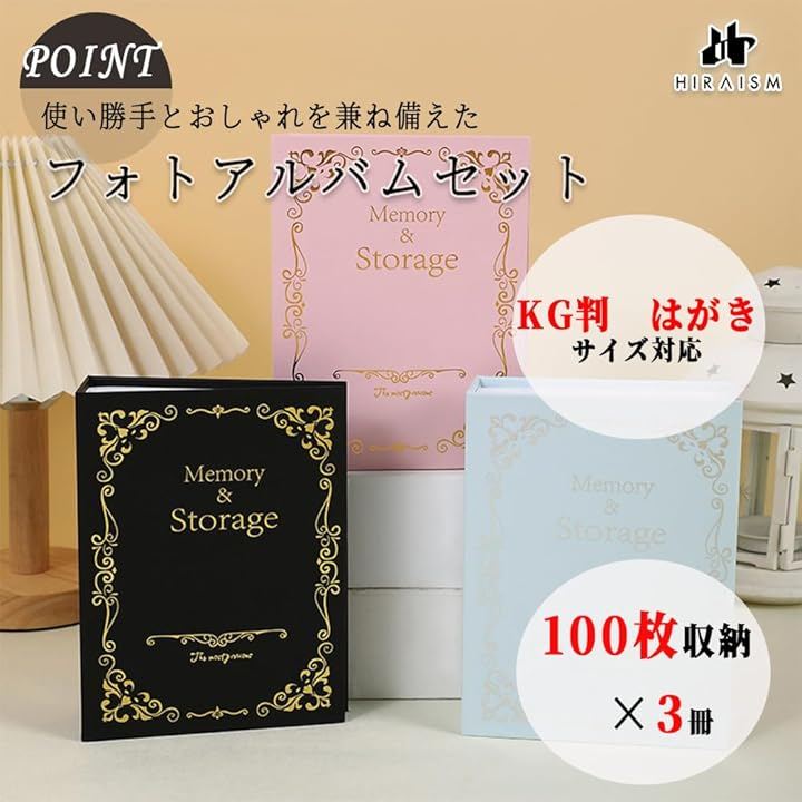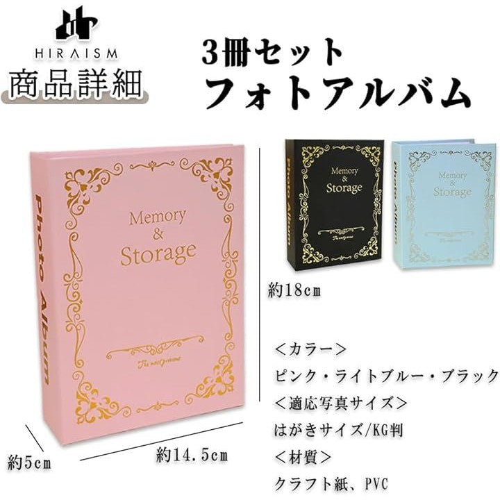 フォトアルバム 大容量 300枚 3色セット KG判 はがきサイズ おしゃれ かわいい