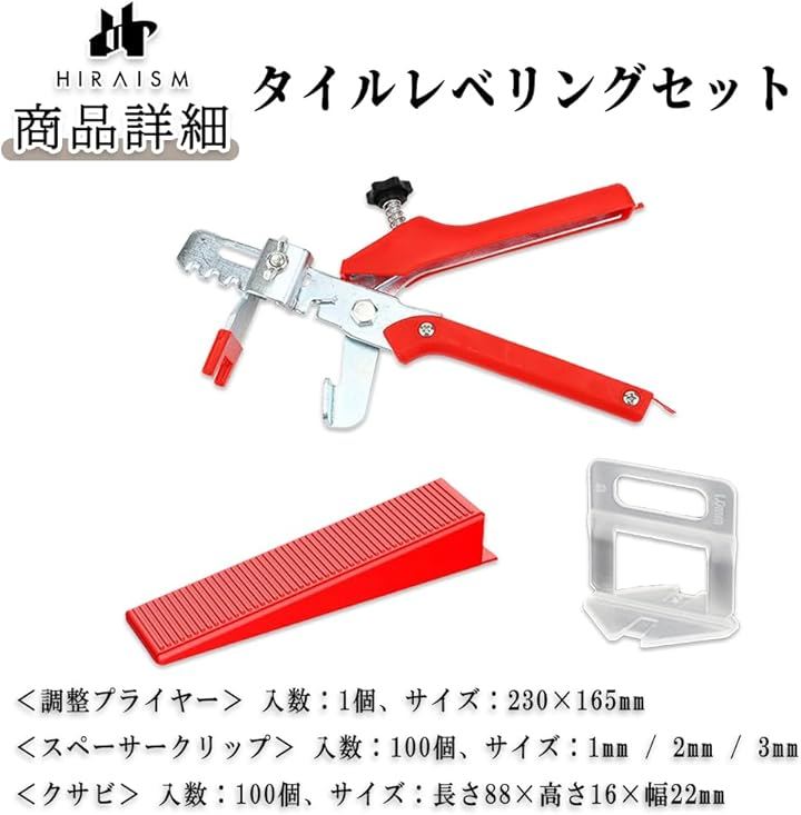 タイルレベリング セット スペーサー クサビ プライヤー 高さ調整 タイル施工 補助ツール