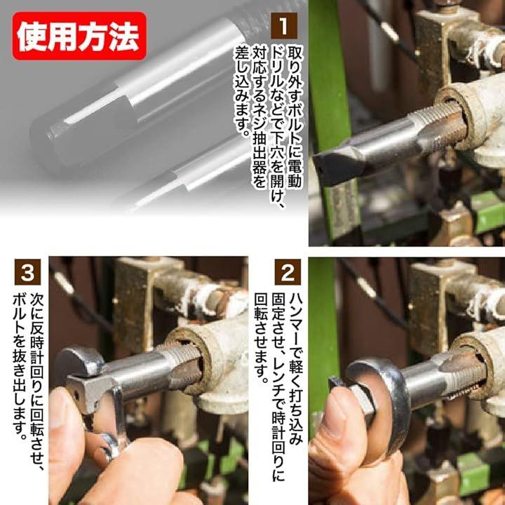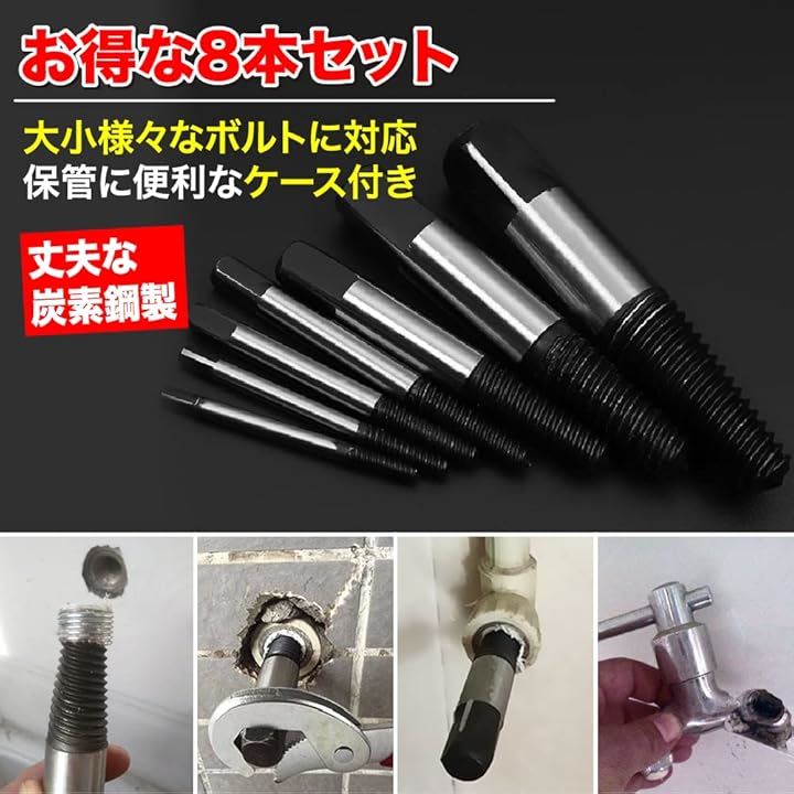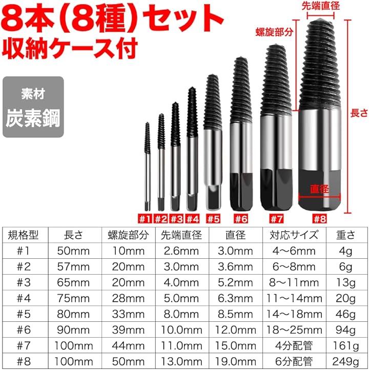 ネジ抽出器セット 8本セット ボルト 折れ 破損 ネジ溝 ネジ抜き ネジ外し 抜き取り 工具