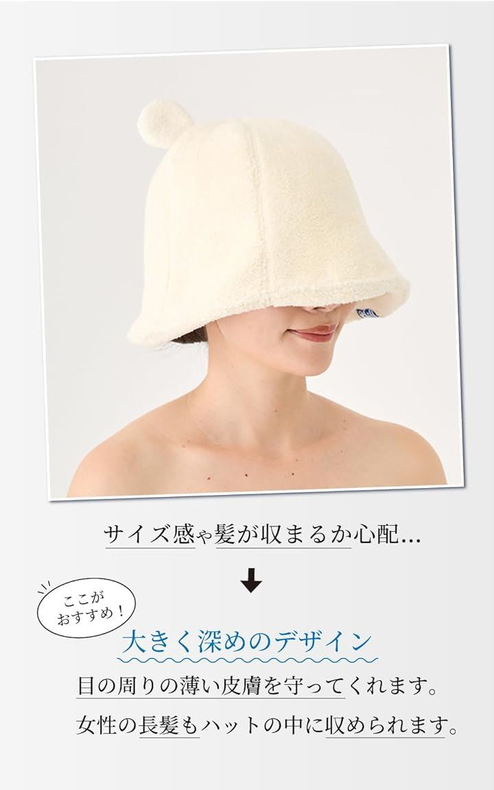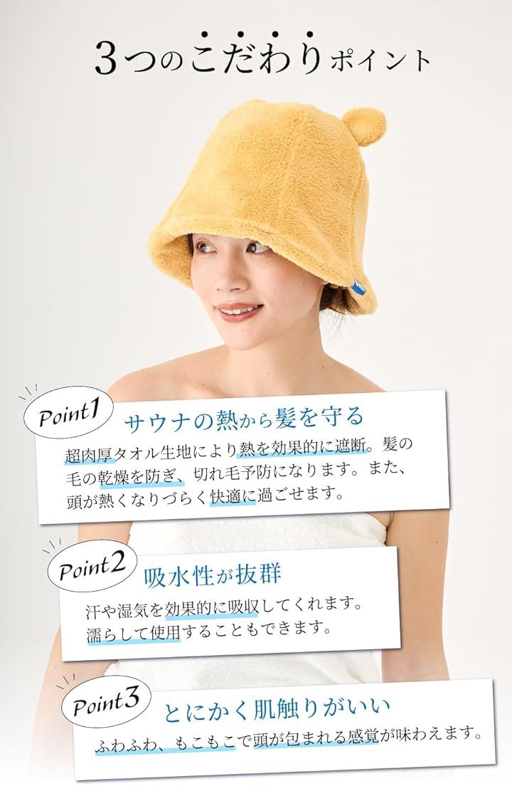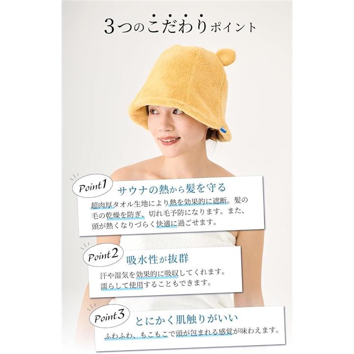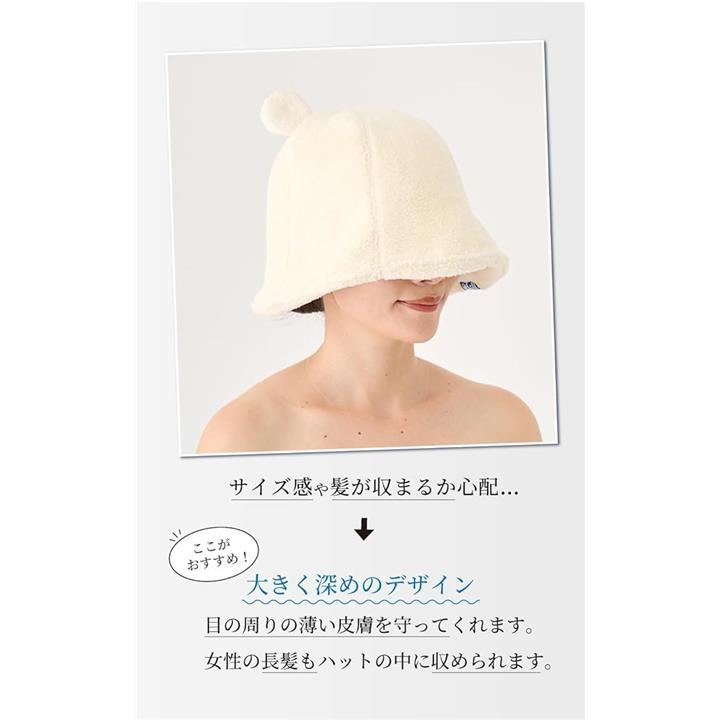 バレリア サウナハットもふもふの肉厚タオルが髪を熱から守る 帽子 レディース 吸水性 深く被れる 洗濯機で洗える フック付き