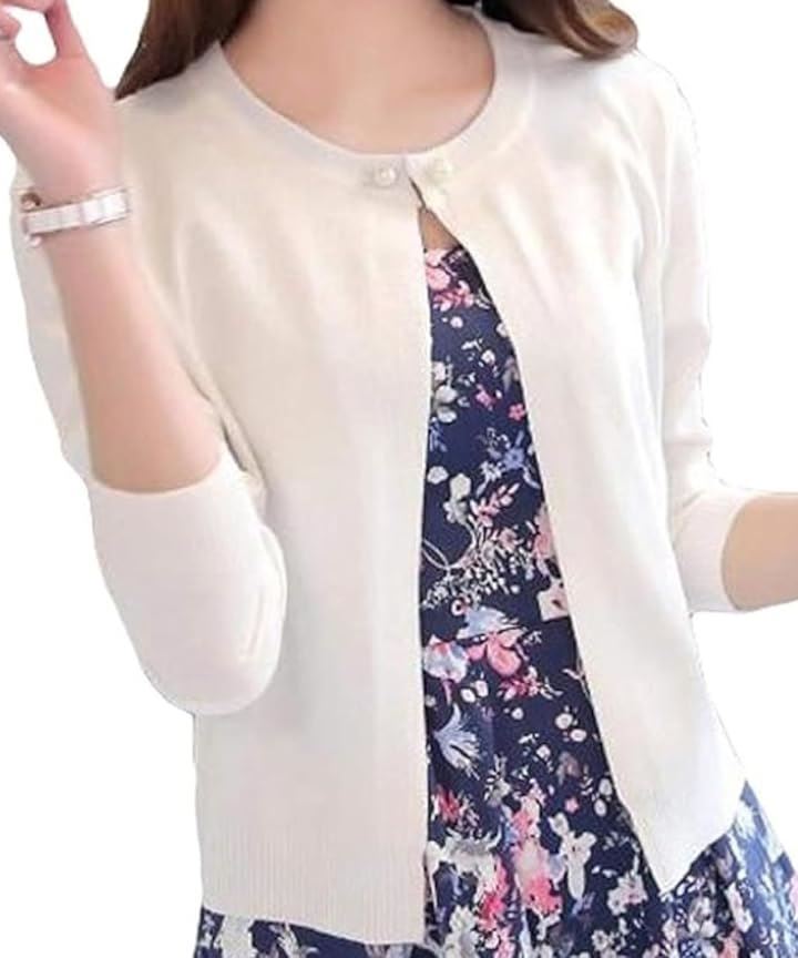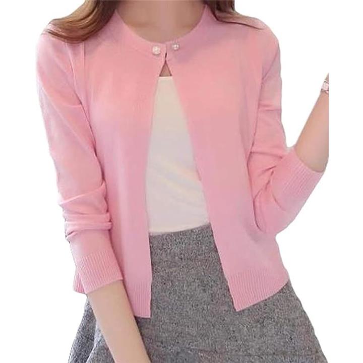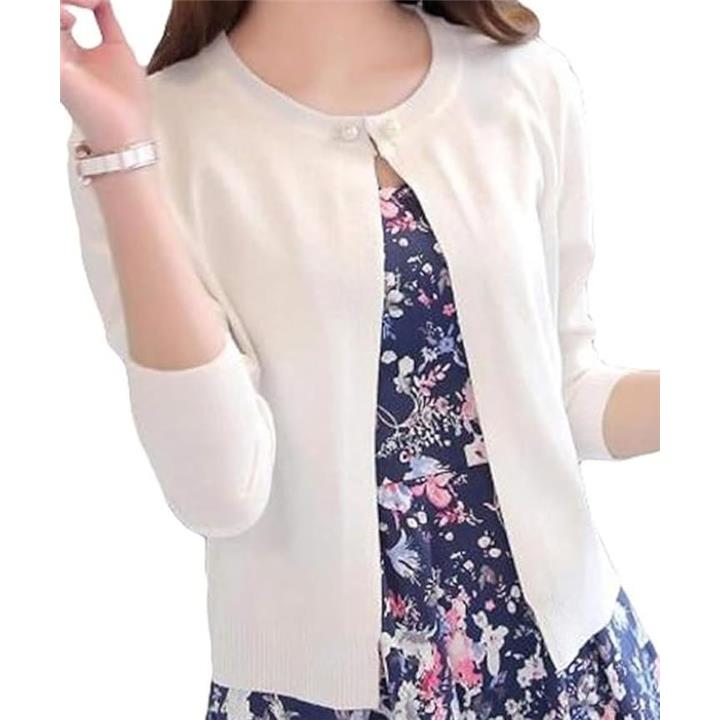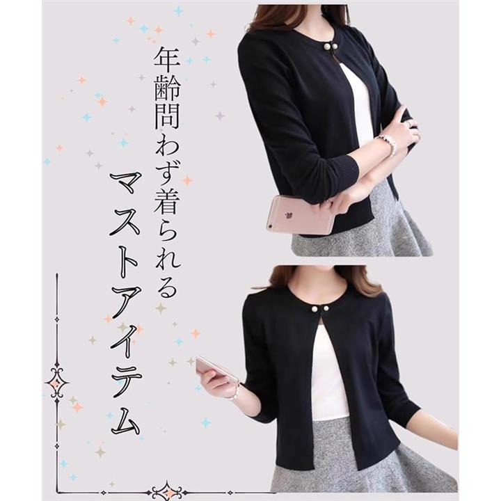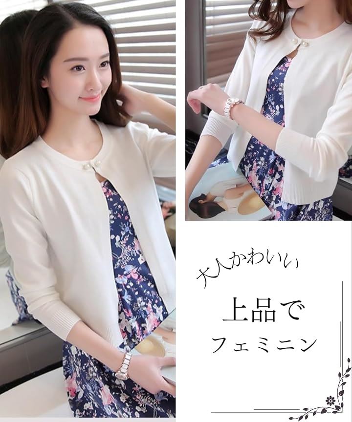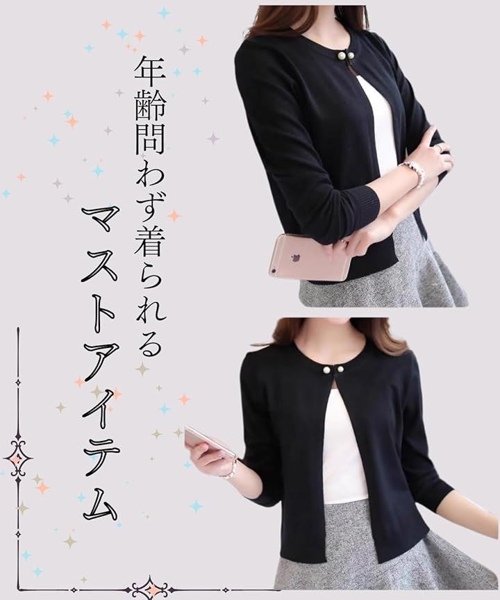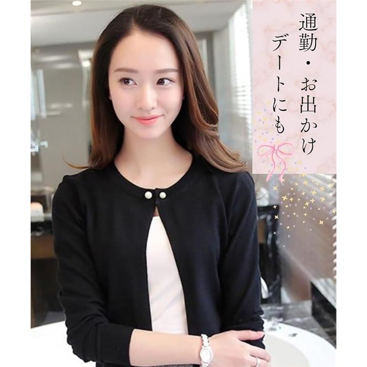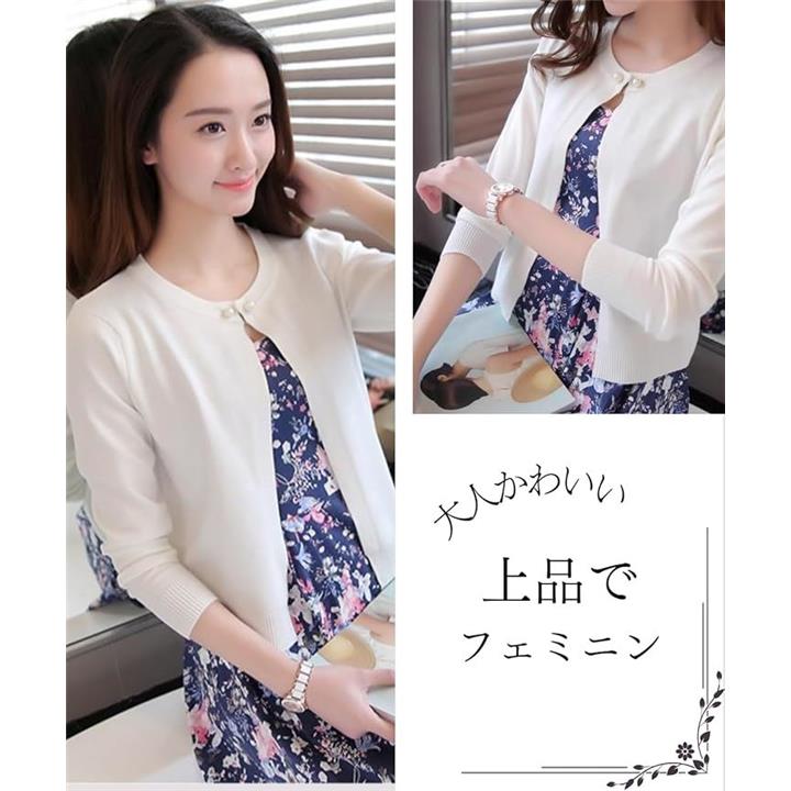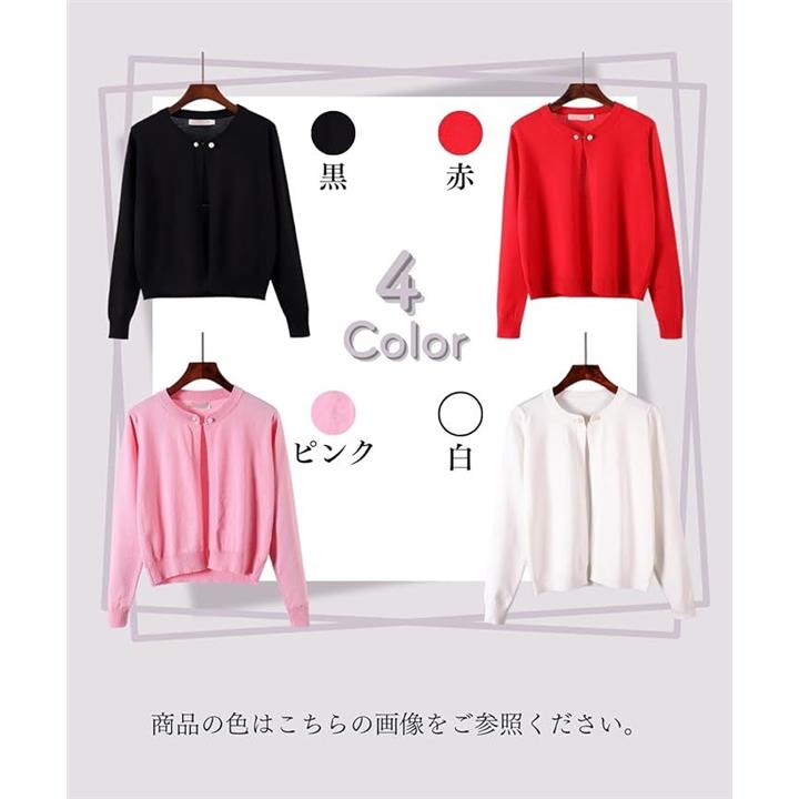 [Elixio] [エリクシオ] カーディガン レディース トップス 羽織り ニット クルーネック きれいめ 上品 可愛い 無地 長袖 シンプル 秋 秋冬 通年 パール |