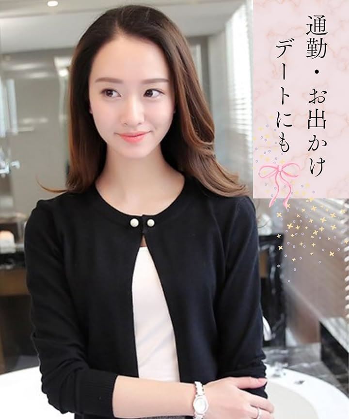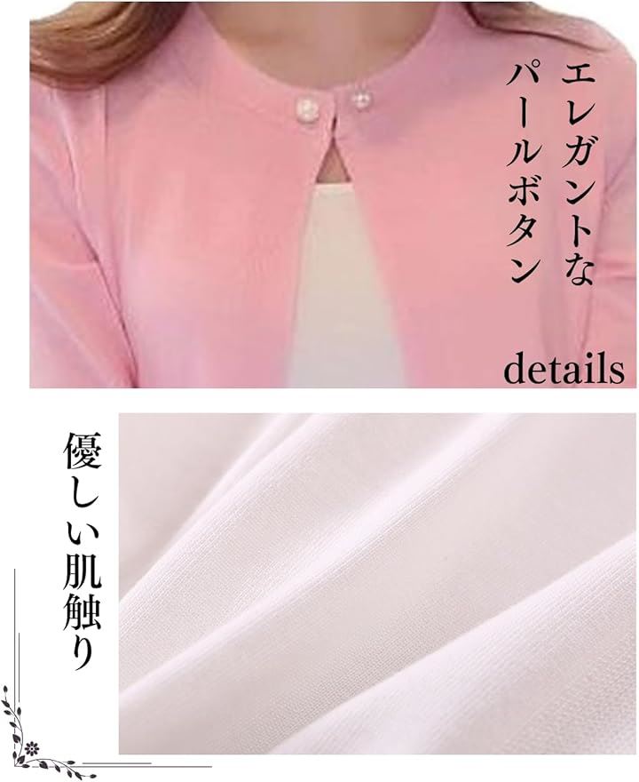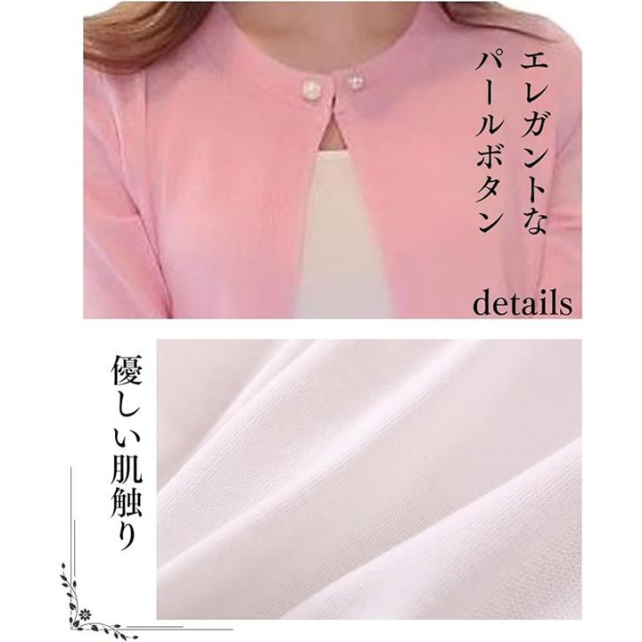 「シンプルで上品なデザイン」シンプルでありながら、パールボタンがアクセントとなり、清楚で大人かわいいスタイルを実現します。