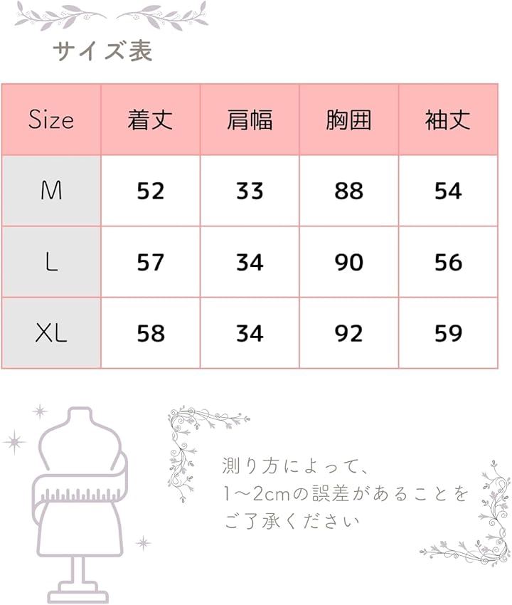 「サイズ」M /L/XLの3サイズ展開 《M》着丈:52,肩幅:33,胸囲:88,袖丈:54 《L》着丈:57,肩幅:34,胸囲:90,袖丈:56 《XL》着丈:58,肩幅:34,胸囲:92,袖丈:59 *ストレッチはききますが、通常のサイズ感より少し小さめですのでご注意ください。