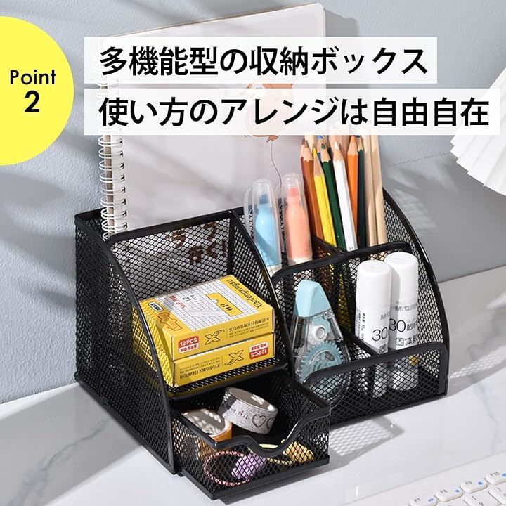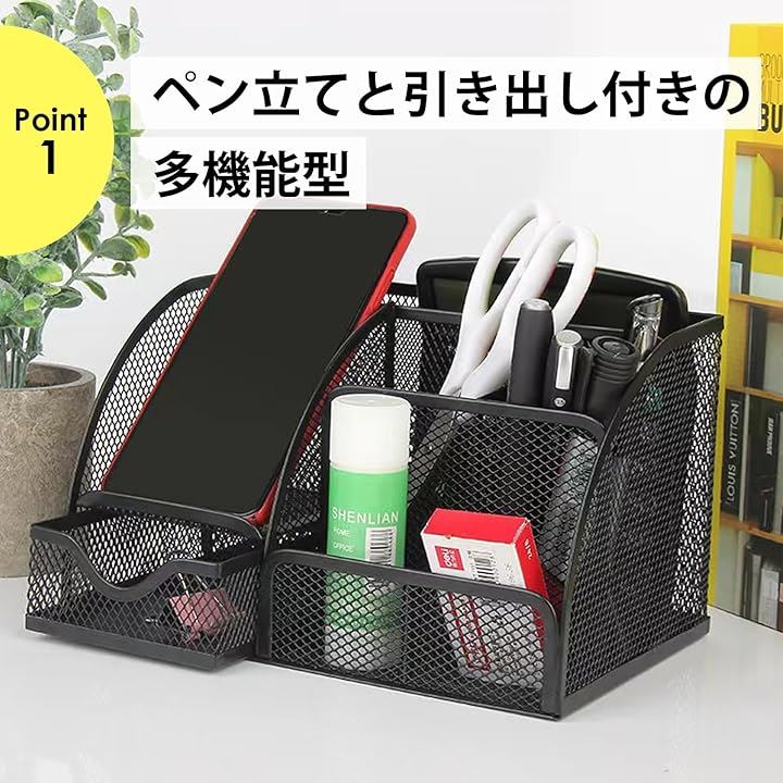 文具収納 デスクオーガナイザー ペン立て 卓上収納 多機能 引き出し付き