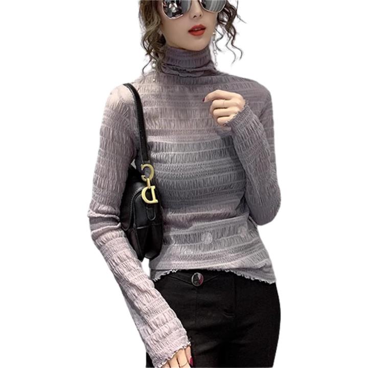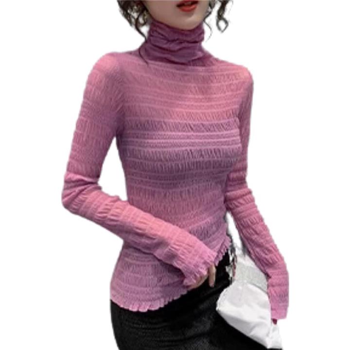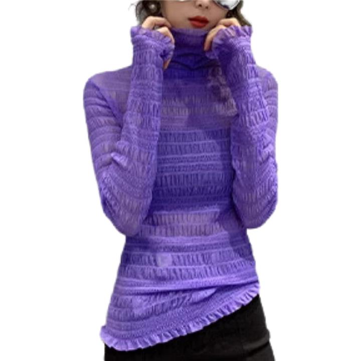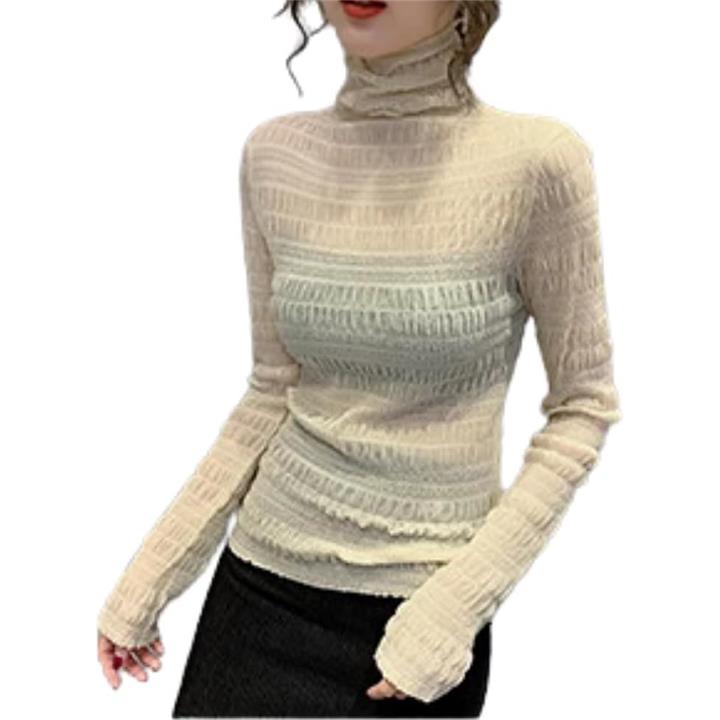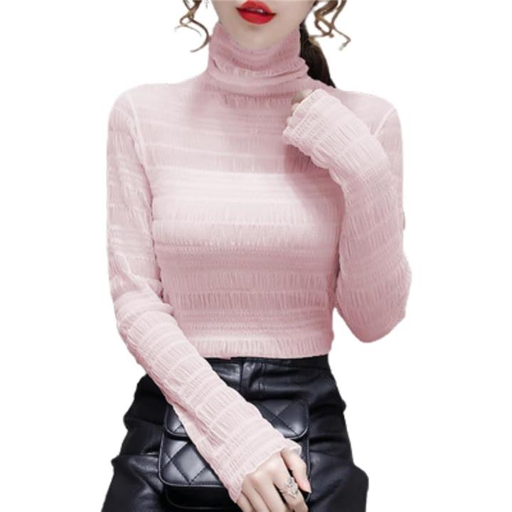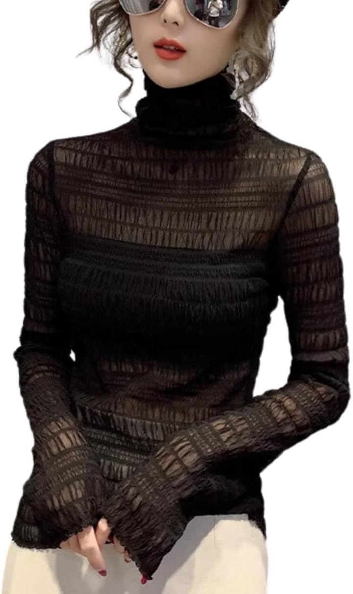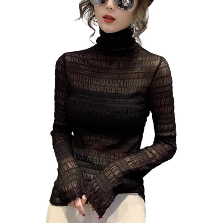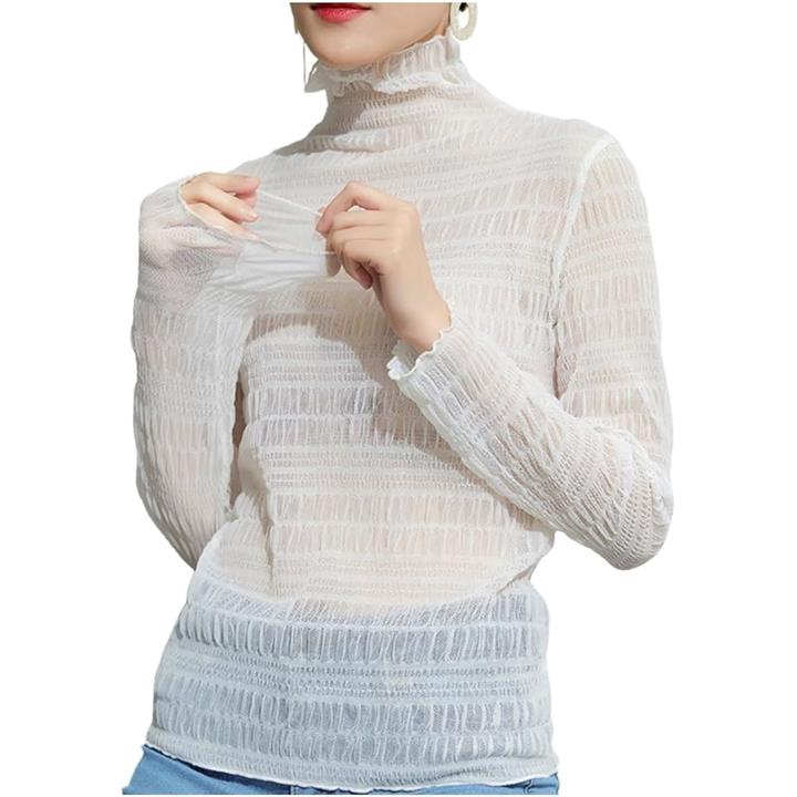 [グリーンパキラ] 可愛い チュール ブラウス インナー トップス シアー シースルー シフォン 透ける 長袖 レディース ハイネック 薄手 軽い 高伸縮 重ね着 着回し |