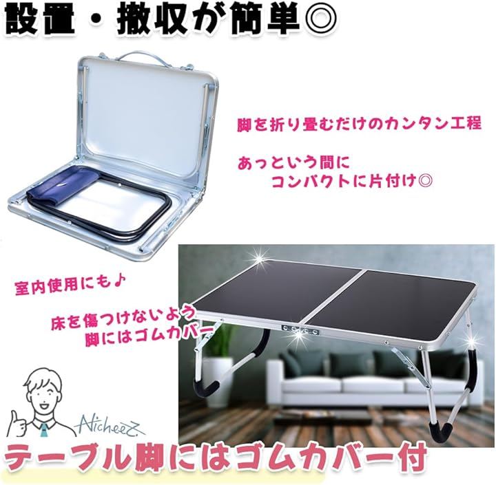ローテーブル アウトドア キャンプ 2つ 折り たたみ 式 軽量