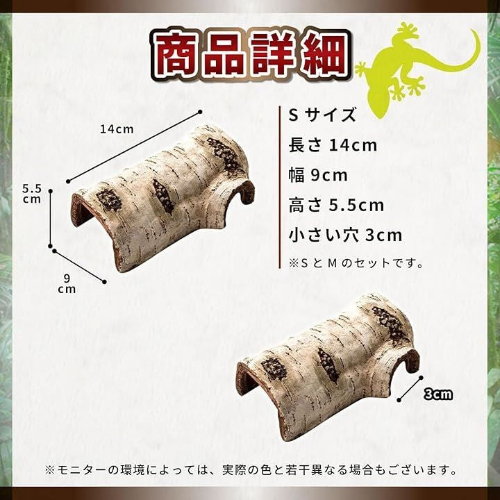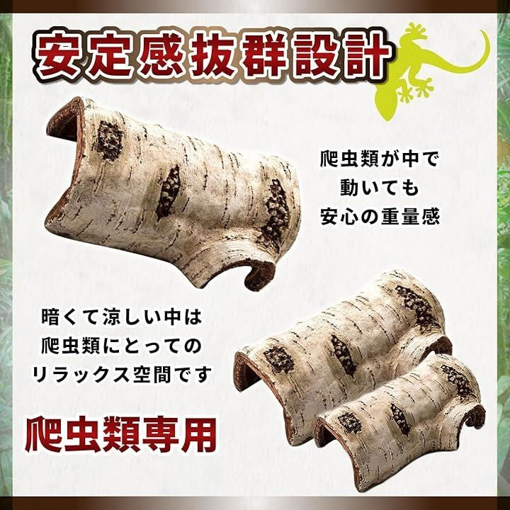 爬虫類 シェルター レオパ ヤモリ カエル 飼育 トカゲ 白樺 樹皮 流木 登り木 隠れ家 テラリウム S M セット