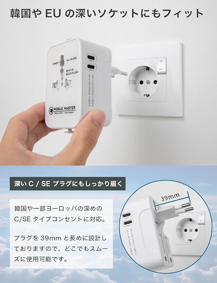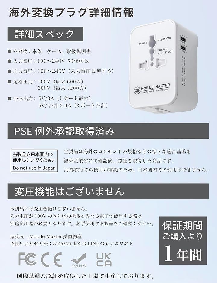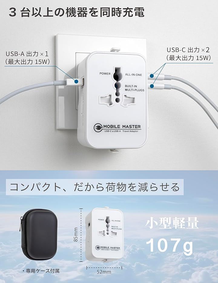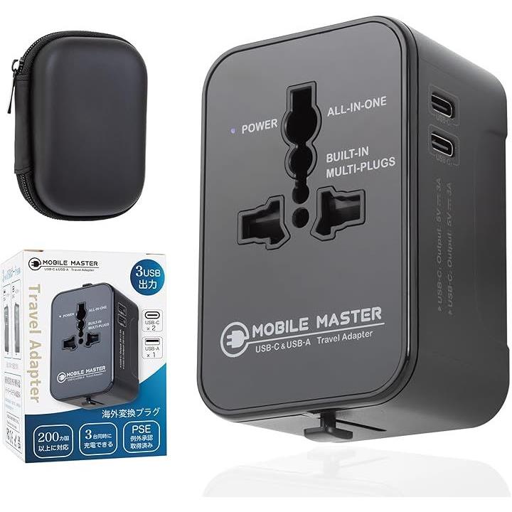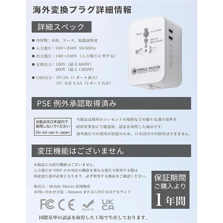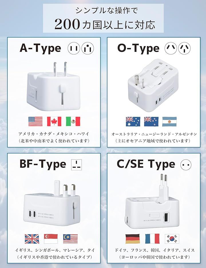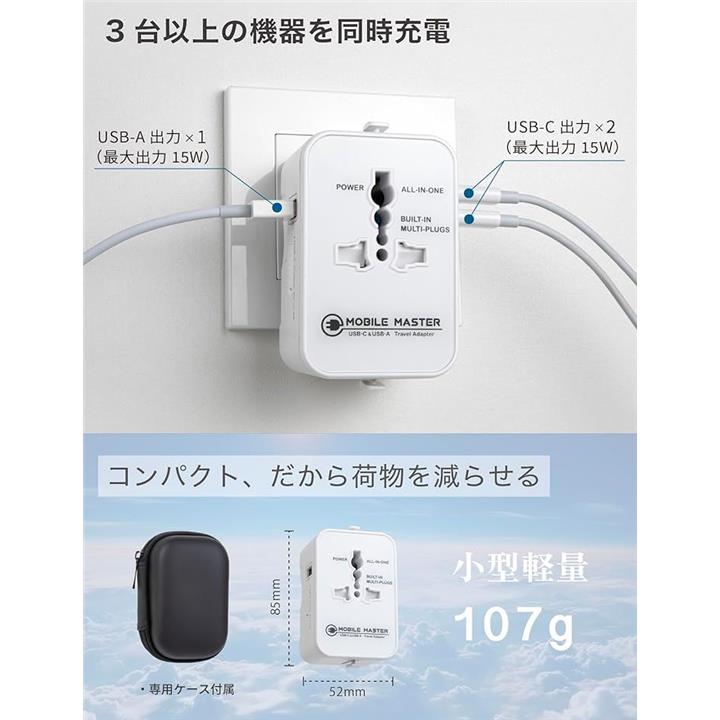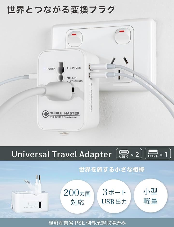 海外 変換プラグ USB-C出力対応 マルチ変換プラグ 変換器 海外旅行用 全世界対応 コンセント 経済産業省承認済