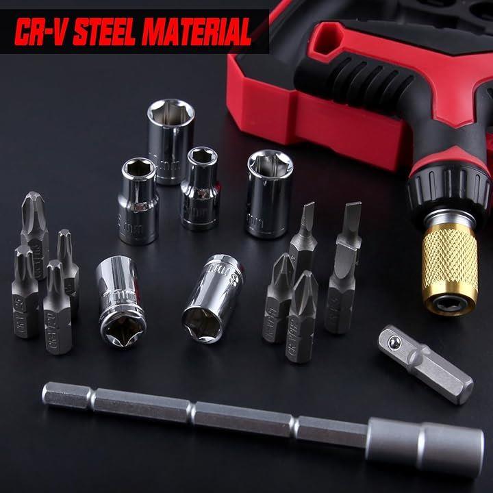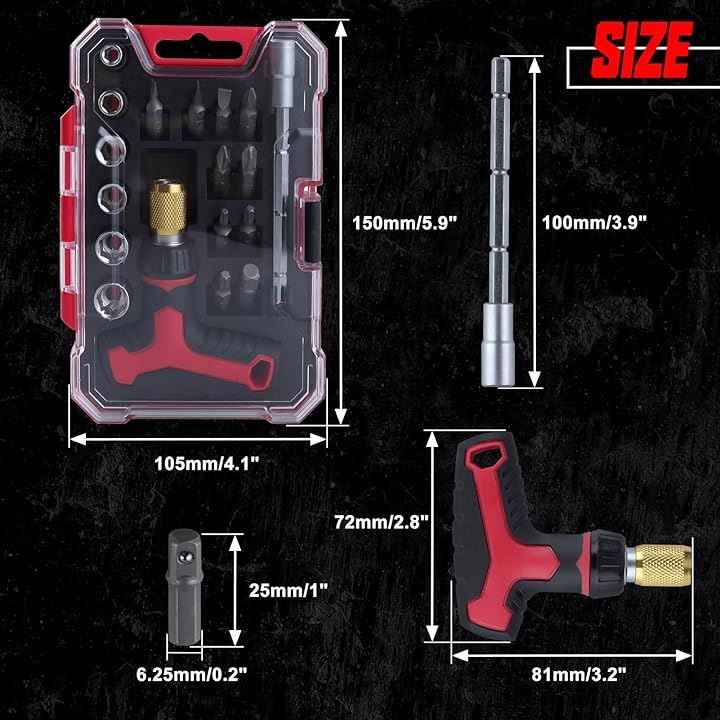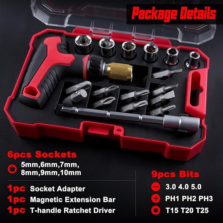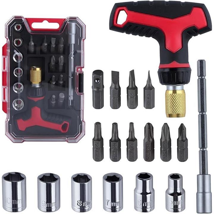 Tハンドルラチェットレンチドライバーセット 18個セット T型ハンドルラチェットドライバーセット T型ラチェットハンドルセット 差替式 磁気