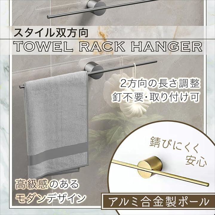 SALUDABLE タオルハンガー タオル掛け キッチン 洗面所 タオルホルダー タオルバー 部屋 (50cm ゴールド・ゴールド) |