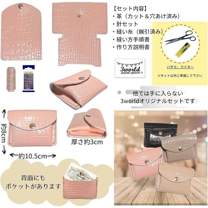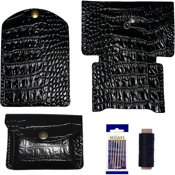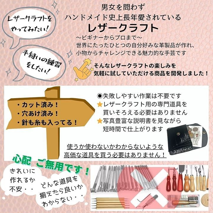 カードケース レザークラフト キット おためし入門 牛本革 カット 穴あけ 済み 針 糸 付属