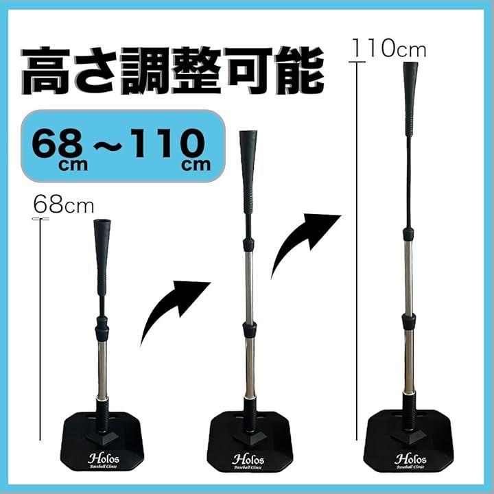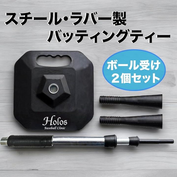 HolosBaseballClinic バッティングティー 《ボール受け2個付》ティースタンド ゴム 金属 置きティ 高さ調整 スプリング式 野球 打撃 素振り 練習