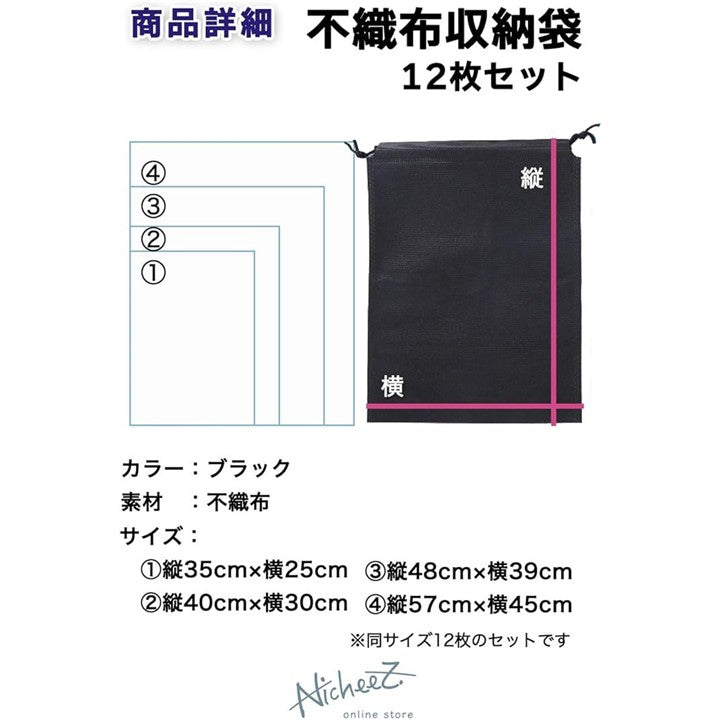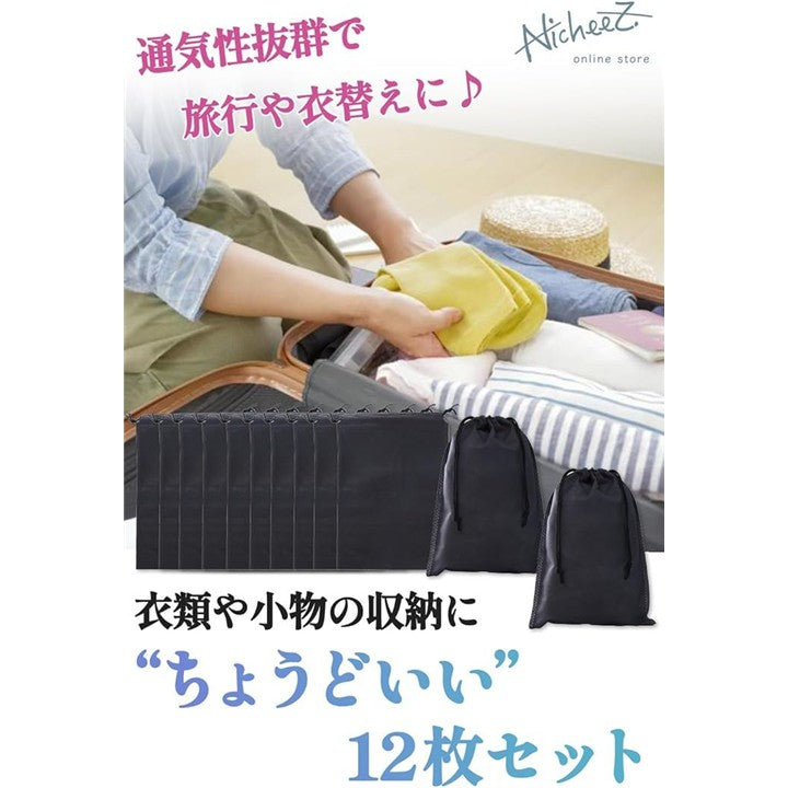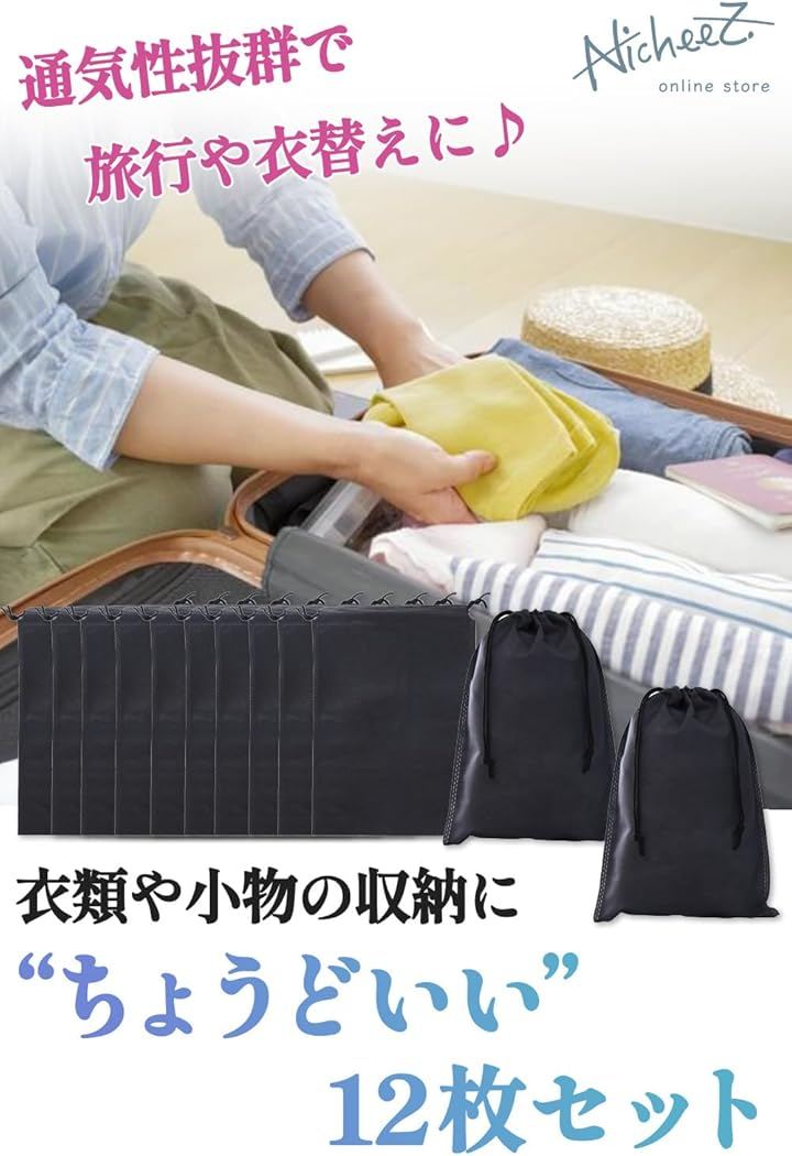不織布 袋 巾着 カバン 収納 鞄 バッグ 靴 衣類 保管 通気 衣替え 12枚セット