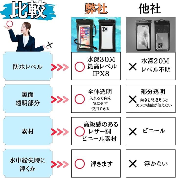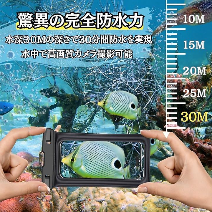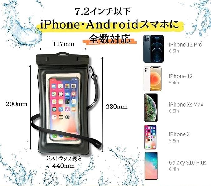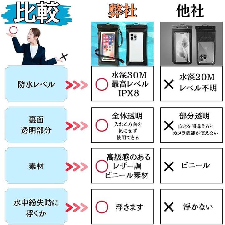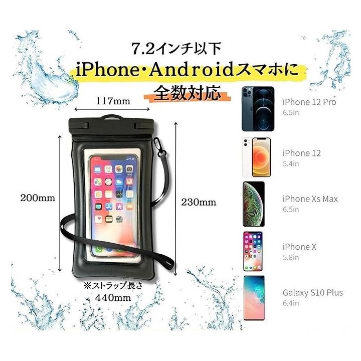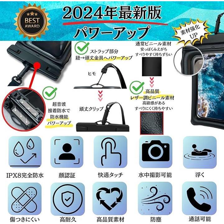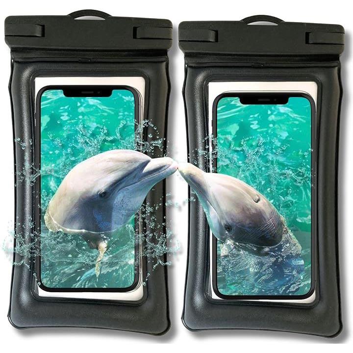 2枚セット かっこいい革調素材&浮く・完全防水 スマホ ケース ポーチ 防水レベIPX8認定 快適タッチ Face ID認証 水中撮影 ストラップ付 7.2インチ 海 お風呂 雨対策