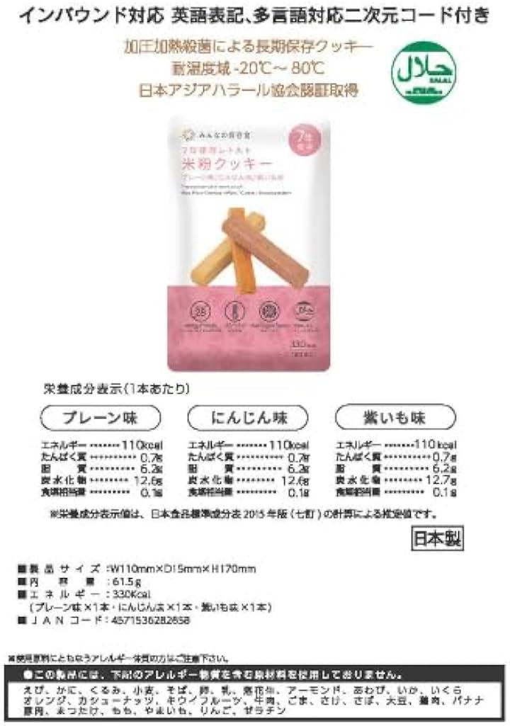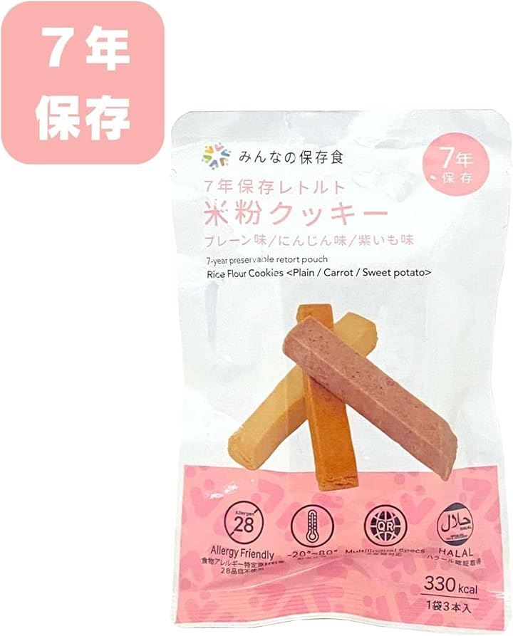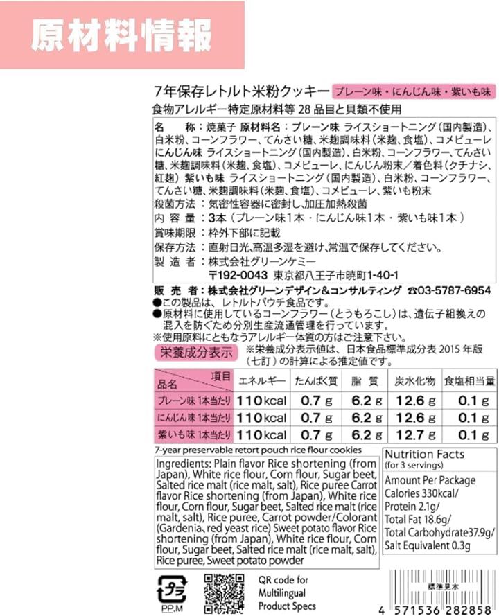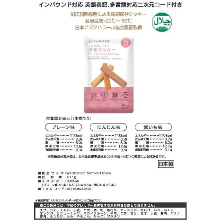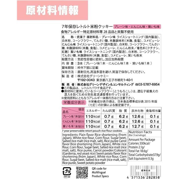 Next Dekade 7年保存レトルト米粉クッキー 3本入り 食物アレルギー 特定原材料 28品目不使用 貝類不使用 お菓子 保存食 長期保存 レトルトパウチ 車載 *耐温度域 : -20℃~80℃