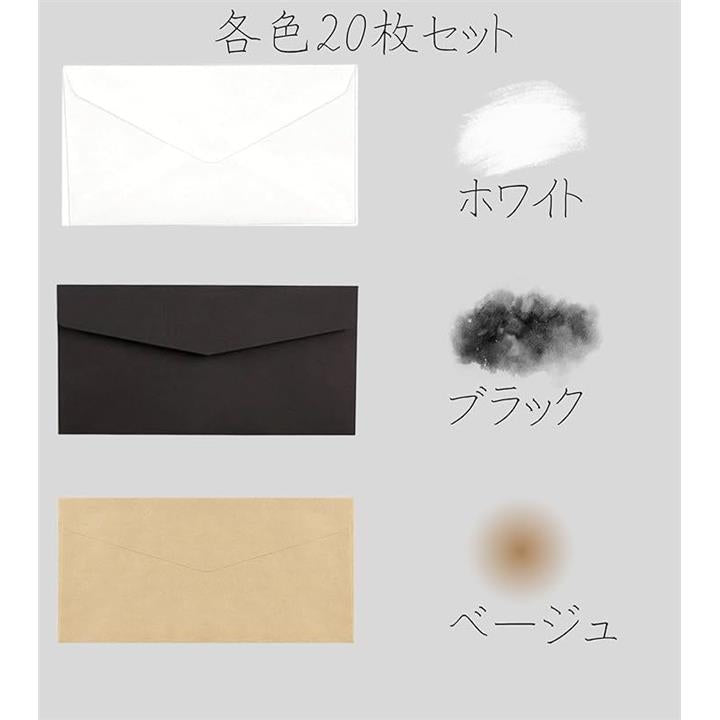 洋長6封筒 ビンテージ調 無地 ダイヤ貼 60枚 ブラック A4三つ折り が入るサイズ 手紙 ヴィンテージ 60枚セット