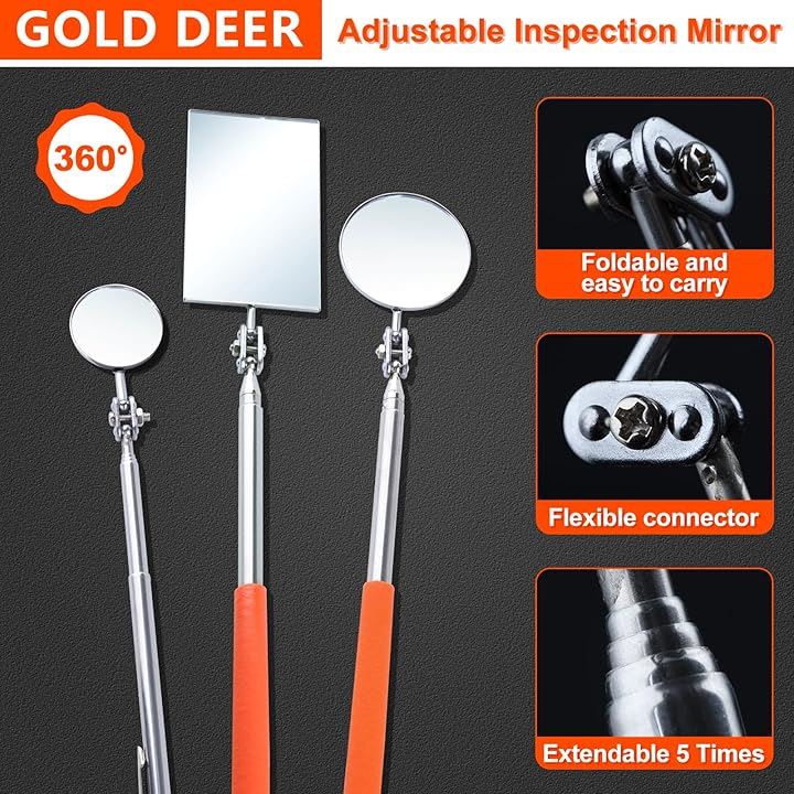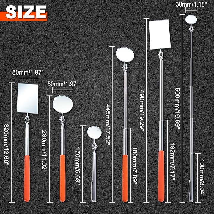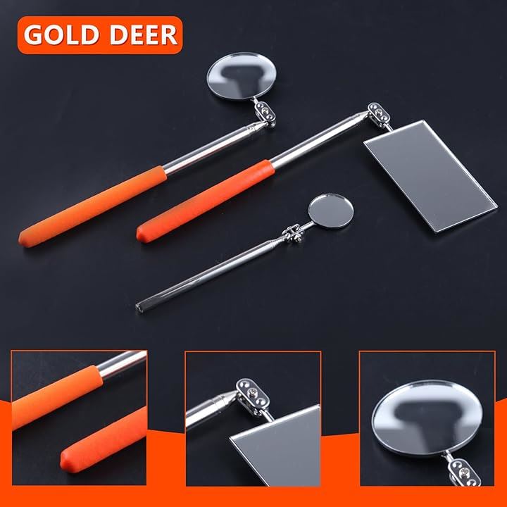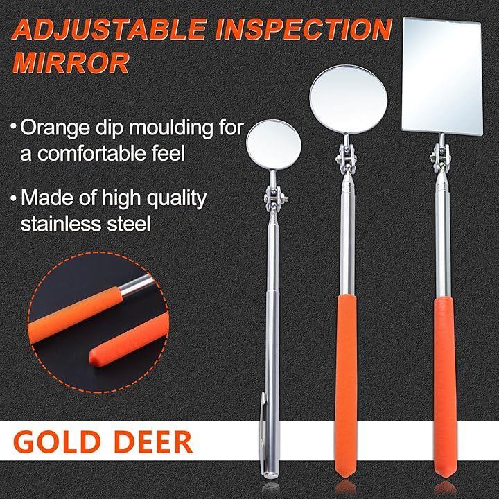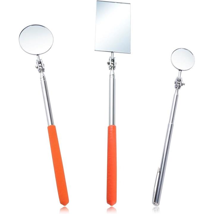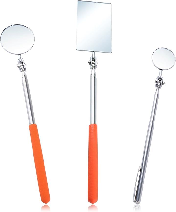 3点セット 伸縮式自動点検ミラー 伸縮式オートインスペクションミラー 点検鏡 検査鏡 車両点検ミラー メカニックミラー ロングハンドル 角度調整可能 360°点検ミラー伸縮旋回ヘッド ハンドミラー 17cm~50cmストレッチサイズ 小型