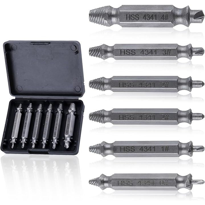 6本セット 破損したネジ抜きセット チタン損傷ネジ引抜きセット なめたネジはずしビット なめた六角ボルト外し クリューエキスト 螺旋 リコイル スタッドボルトリムーバー ネジザウルス ネジ外し ネジ外しビット 収納ケース付き