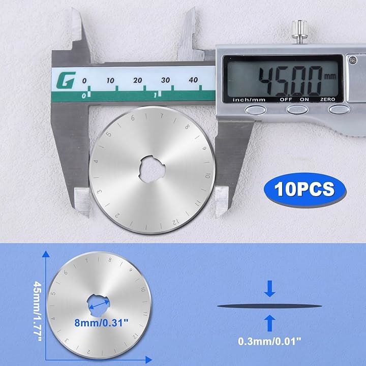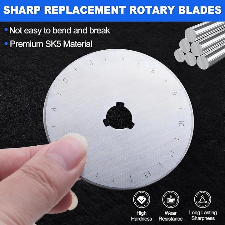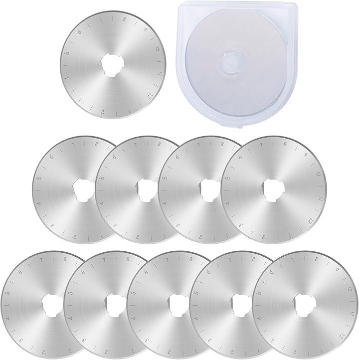 互換品 10枚入 ロータリーカッター 円形カッター 替刃 目盛りつく オルファ OLFA などマルカッターに適用 収納ケース付き ロータリー刃 回転カッター シャープ 布 紙 ビニール レザー 生地 切断 diy 手作り
