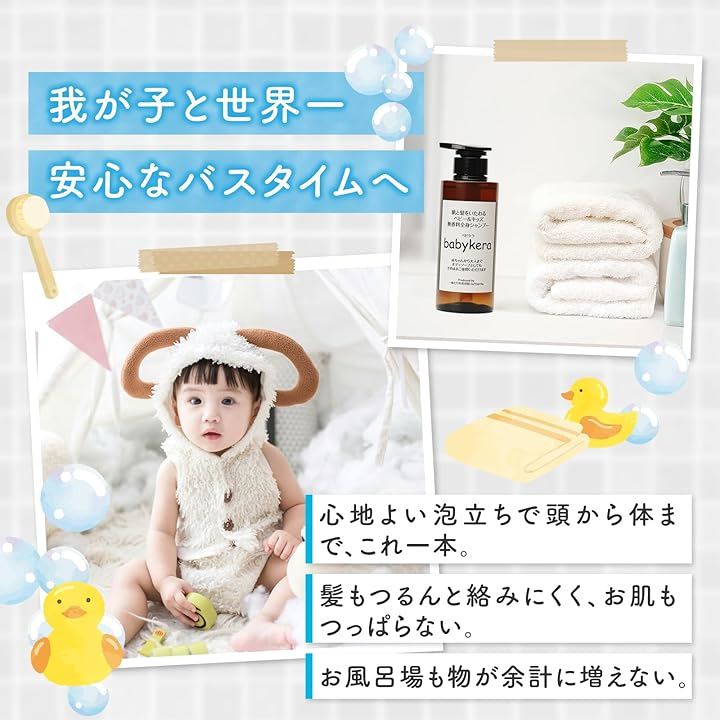 ベビケラ 美容院監修 ベビーソープ ベビーシャンプー ボディソープ 赤ちゃん&キッズ用 新生児 子供 無香料 オーガニック 敏感肌 高保湿 日本製