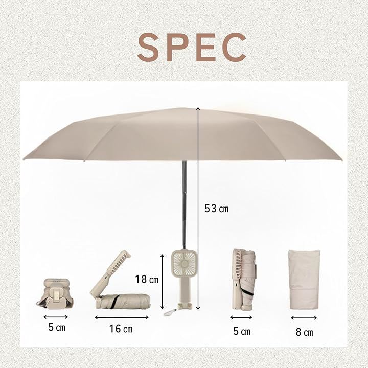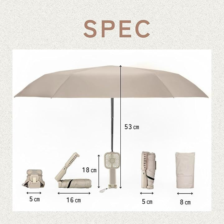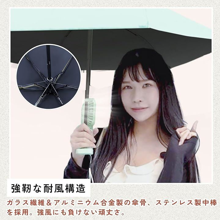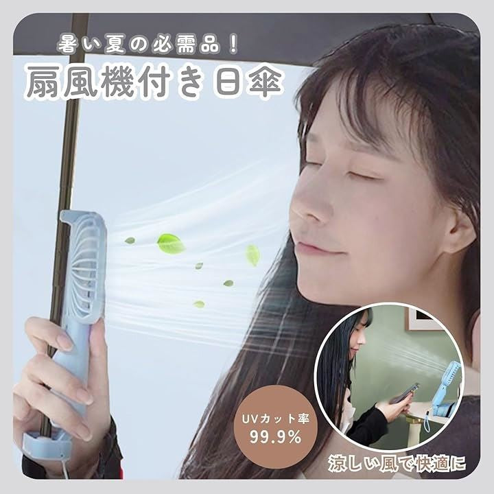 日傘 扇風機付き 折り畳み傘 ファン パラソル 6本骨 U Vカット 日焼け防止 耐風 撥水 軽量 折りたたみ傘 晴雨兼用
