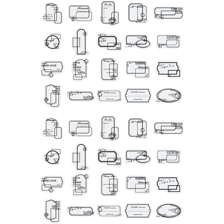 [ドナリー]おしゃれで可愛い レトロ フレークシール 40枚セット 英字デザイン 手帳用 コラージュ素材 |