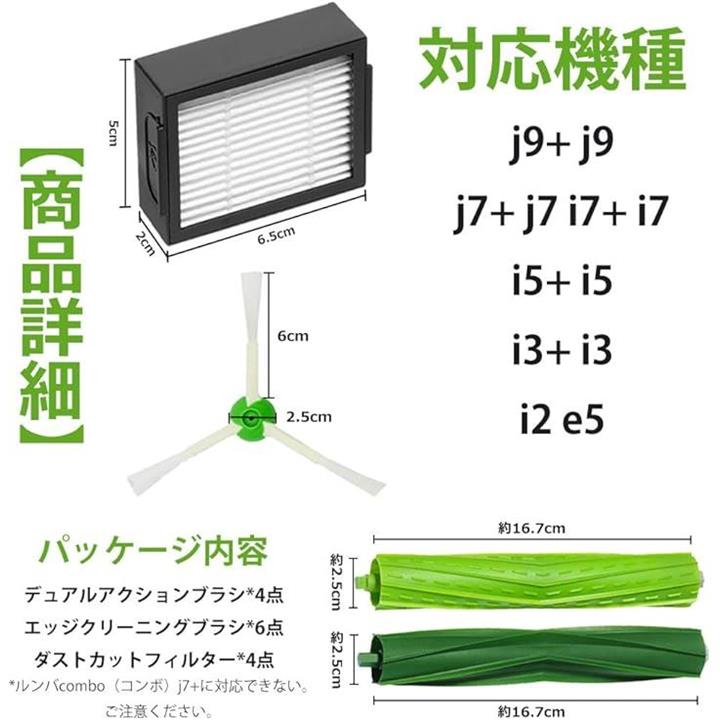 互換品 と互換性のある消耗品セット ルンバ e5 i7 i7+ i3+ j7 j7+ i5 i5+ i2 ロボット掃除機用交換部品エッジクリーニングブラシ ダストカットフィルター エアロブラシセット ネジ付き 14点セット